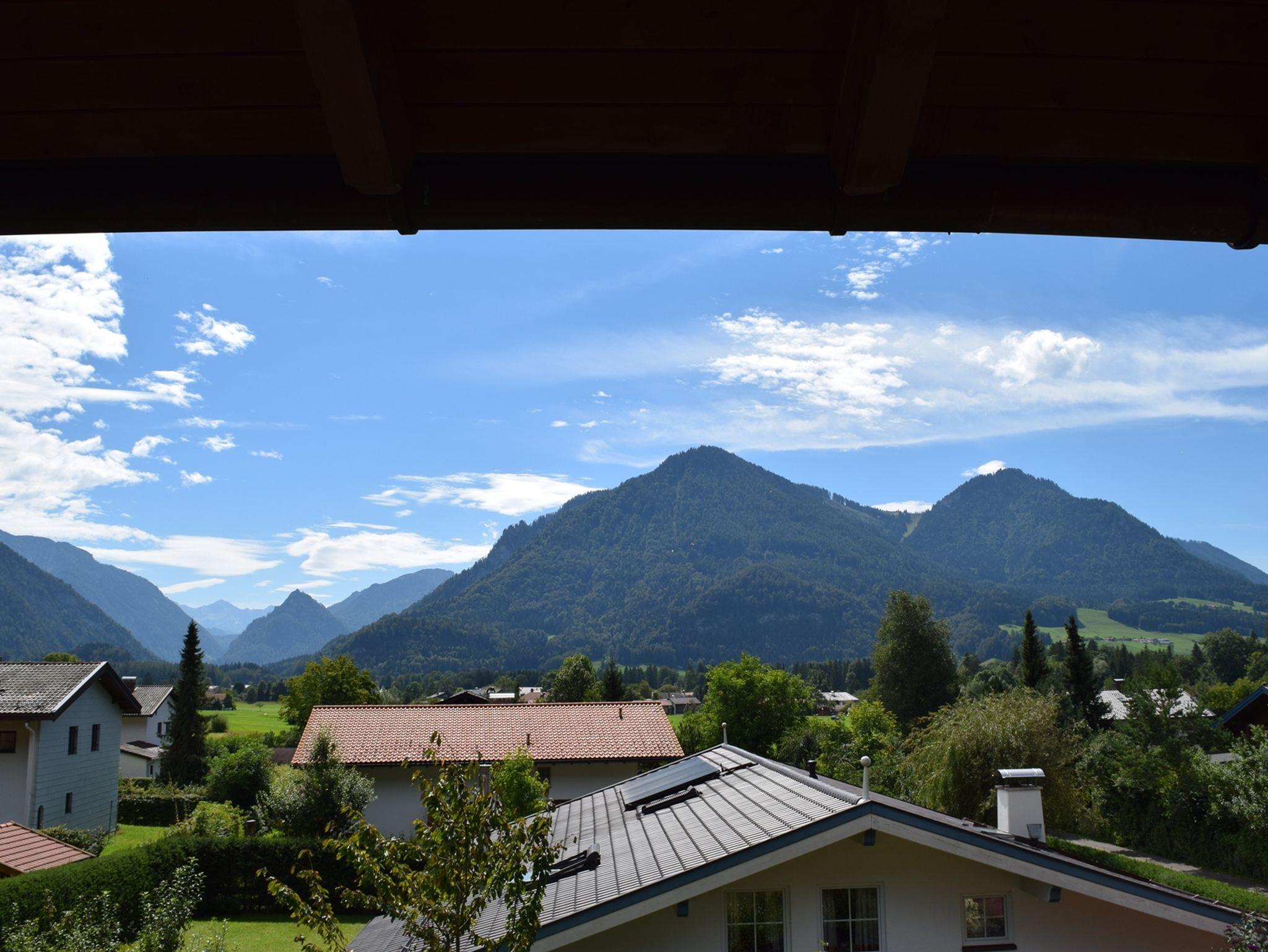 Unser Ferienappartement Almblick bietet auf ca. 38 qm einen großzügigen Wohn-Schlafraum, der neben der Schlafecke mit Doppelbett auch über einen kleinen Essplatz und eine Sitzecke verfügt, die als zusätzliche Schlafcouch genutzt werden s Weiteren gibt es eine kleine, aber voll ausgestattete Küche (Kochnische) und ein eigenes Bad (Dusche/WC).Das schöne und beliebte Appartement ist nach Süden ausgerichtet und hat durch die großen Panoramafenster einen phantastischen Aus- und Weitblick.Das Ferienappartement Almblick liegt ebenerdig im Erdgeschoß und hat zugleich aufgrund der erhöhten Hanglage des Hauses einen freien Ausblick vom sehr großzügigen und witterungsgeschützten Balkon auf das umliegende Bergpanorama mit Rauschberg, Saurüssel, Unternberg, Hochfelln und Westernberg.