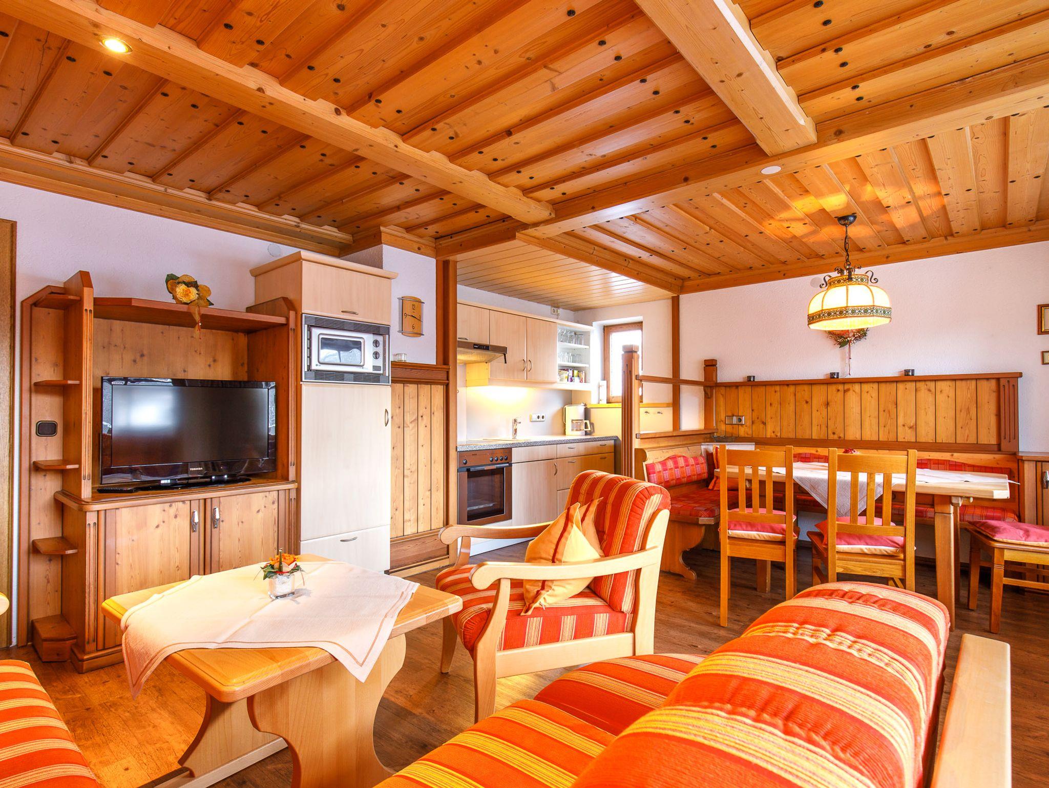 Unsere Paradewohnung hat einen extra großen Wohnraum mit gemütlicher Sitzecke und bequemer Eckcouch.Die Küchenzeile ist mit allem was man für unbeschwerte Urlaubstage braucht, ausgestattet.Zwei geräumige solide Schlafzimmer mit ausreichend Stauraum und hochwertigen Betten garantieren erholsamen Schlaf. Auch das Aufstellen eines Kinderbettes ist möglich.Die Nasszelle kann direkt vom Schlafzimmer erreicht werden und lässt keine Wünsche offen. Ausgestattet ist sie mit Fußbodenheizung, bodengleicher Dusche mit modernster Technik und WC.Vom Wohnraum geht es direkt auf den Südbalkon mit herrlichem Bergblick.