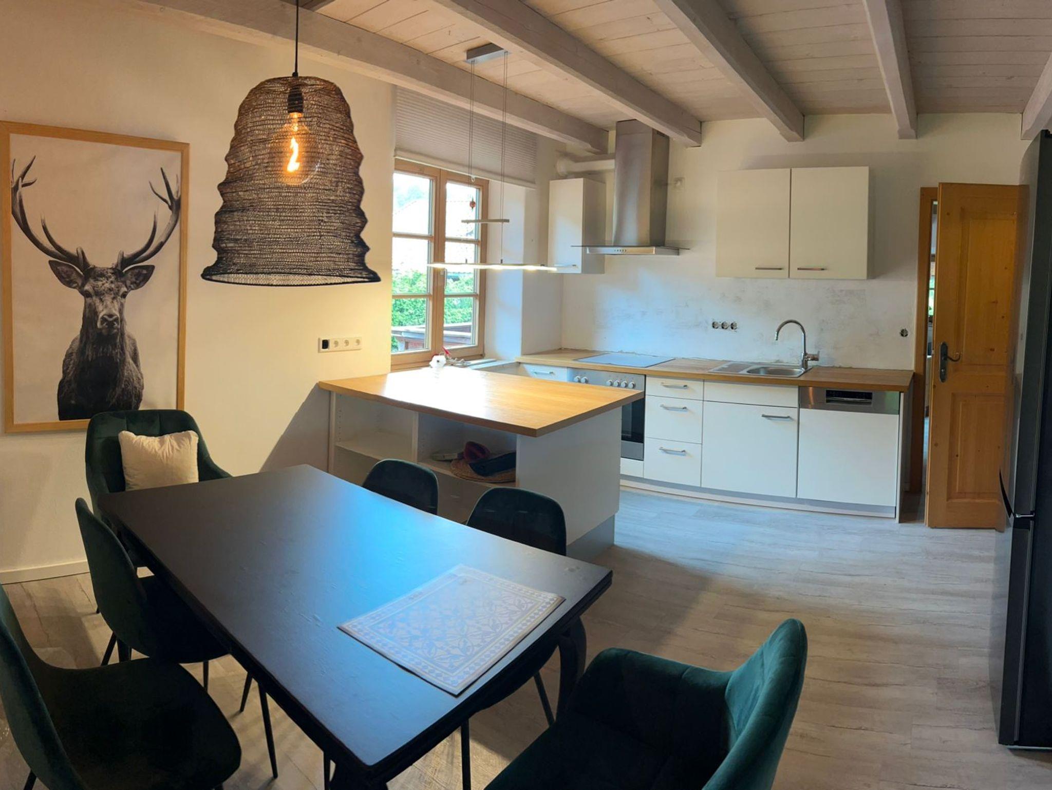 Unsere neue, 2025 modern ausgestattete Ferienwohnung in Ruhpolding liegt im ersten Stock und bietet Platz für bis zu 6 Personen. Highlights sind zwei 55-Zoll-Fernseher, stilvolle Schlafgalerien, eine voll ausgestattete Küche und ein gemütlicher Wohnbereich. Genießen Sie den Balkon mit Bergblick und die Nähe zu Natur, Freizeit und Skigebieten – perfekt für Familien und Erholungssuchende!