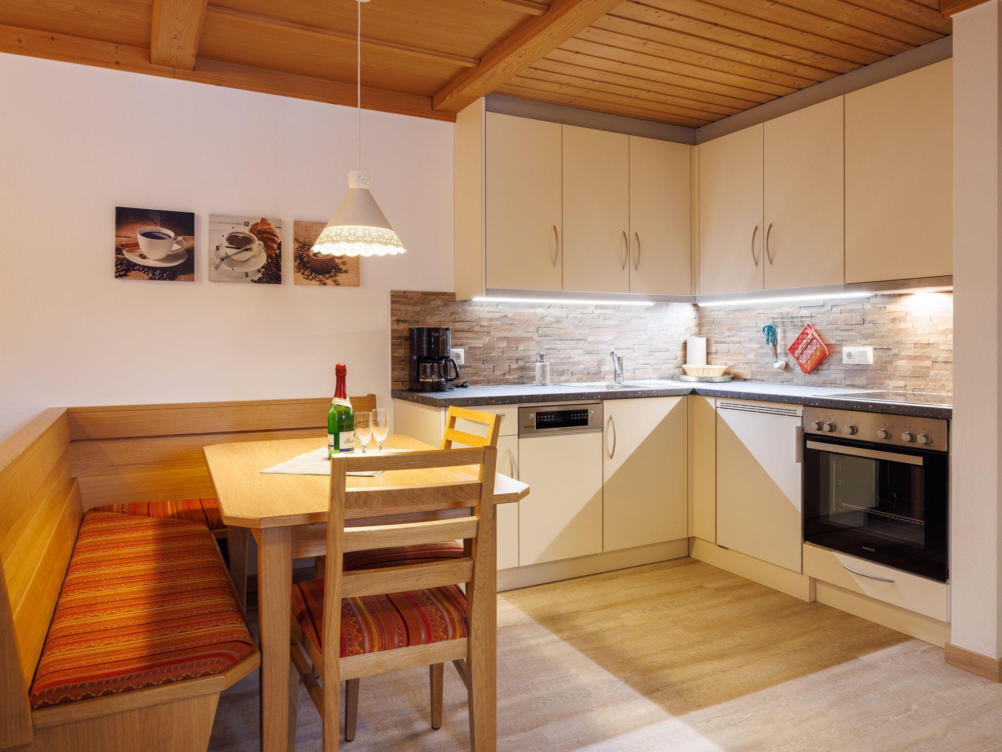 Wohnbereich mit gut ausgestatteter Küche und Essecke,
