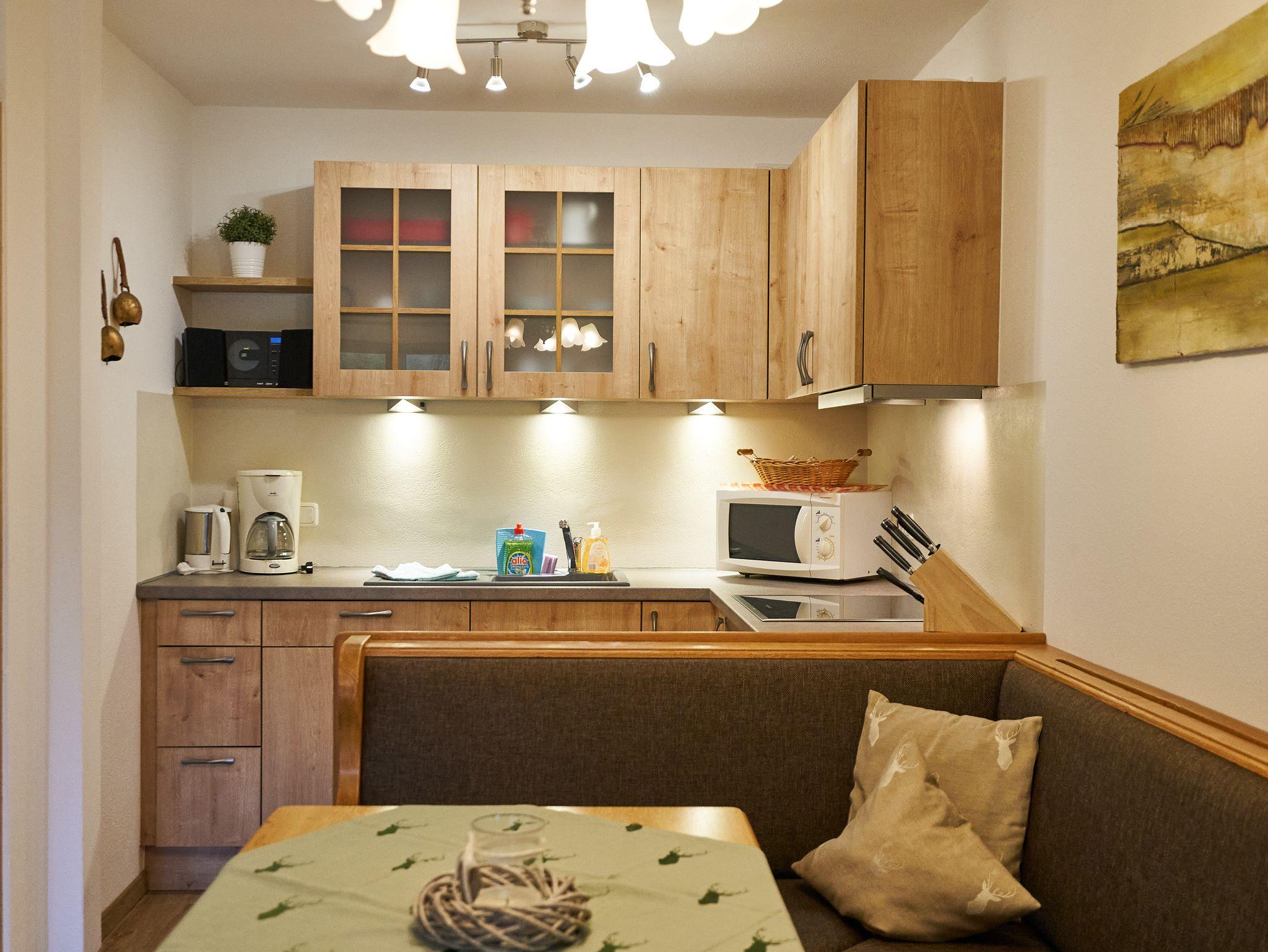 Die 50qm große Ferienwohnung im Zuhaus (Hanghaus) 2.OG am Schwimmteich gelegen mit großem Südbalkon für maximal 2 Personen verfügt über ein separates Schlafzimmer, ein Wohnzimmer und ein Bad mit Dusche/WC. Die hochwertige Küche ist mit Geschirrspüler, Mikrowelle, Backofen mit Ceranfeld und Kühlschrank inkl. Gefrierfach und den nötigen Kleingeräten ausgestattet. Bei einer drei oder vier Personen Belegung befindet sich für die zusätzlichen Personen im Wohnzimmer ein Schlafsofa, im Schlafzimmer besteht nur die Möglichkeit ein Kinderreisebett zuzustellen.