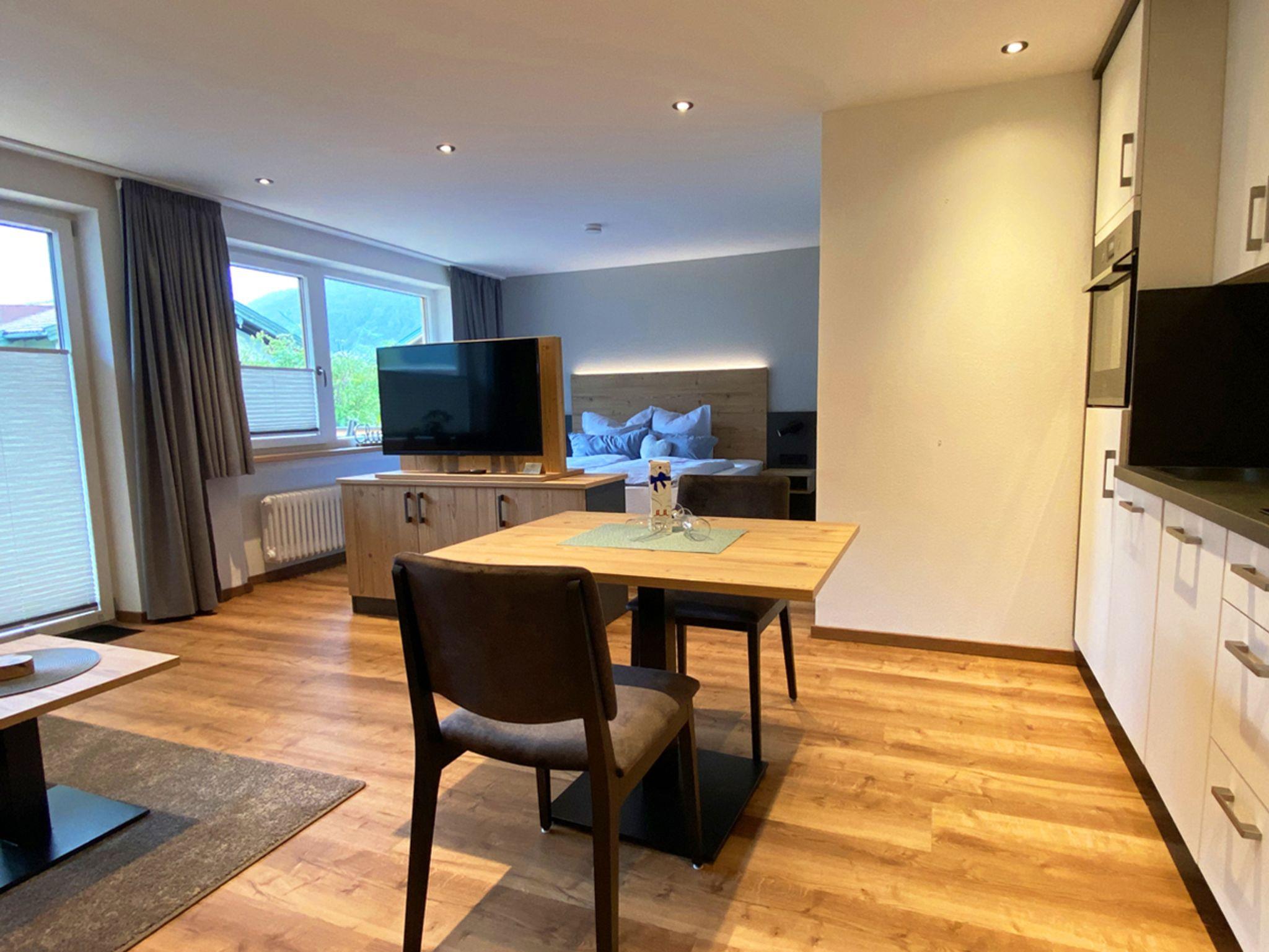 Haus Jäger Ferienwohnungen mit Indoor-Pool inkl. Chiemgaukarte, Ferienwohnung 11, 33qm, Terrasse, Wohnschlafzimmer, Küche, WLAN, FLat-TV