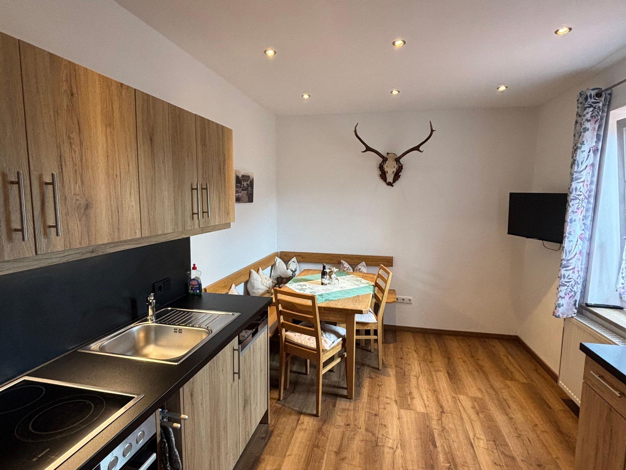 Café Chiemgau und Gästehaus, Ferienwohnung 1, 39qm Balkon, Kochnische, 1 Schlafzimmer Wohnschlafzimmer, 3 P.