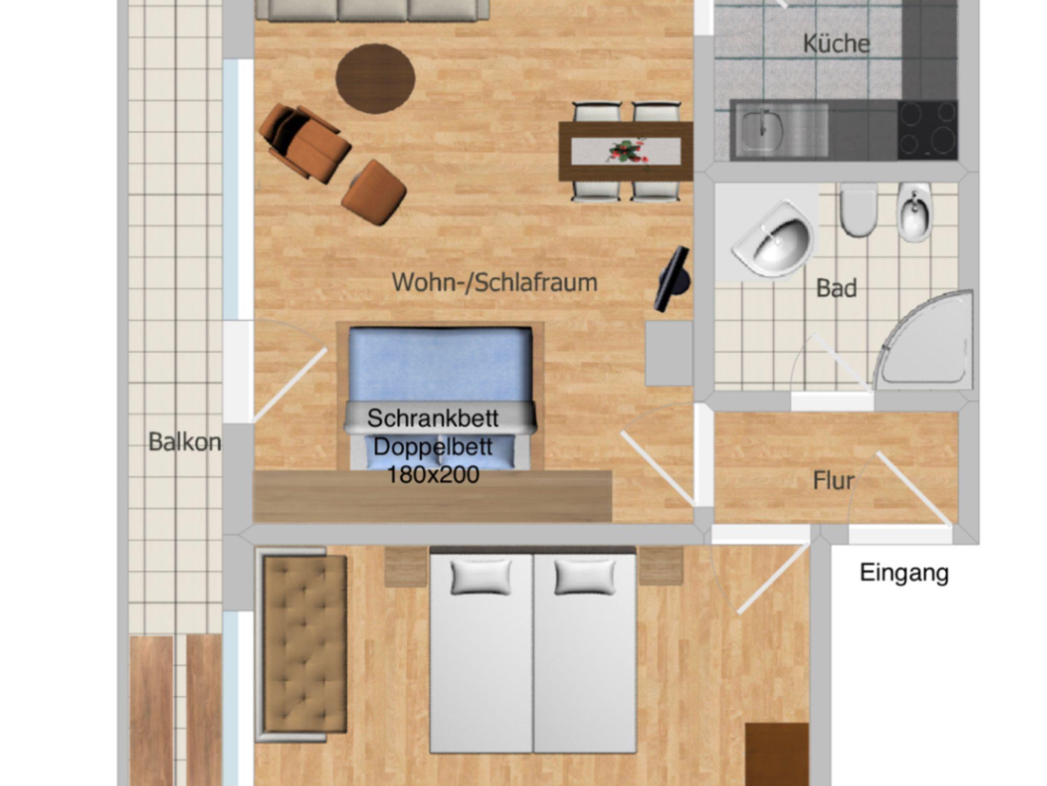 Neu renovierte Ferienwohnung! Nichtraucher 2-Raum-Ferienwohnung mit Südbalkon und Panoramablick