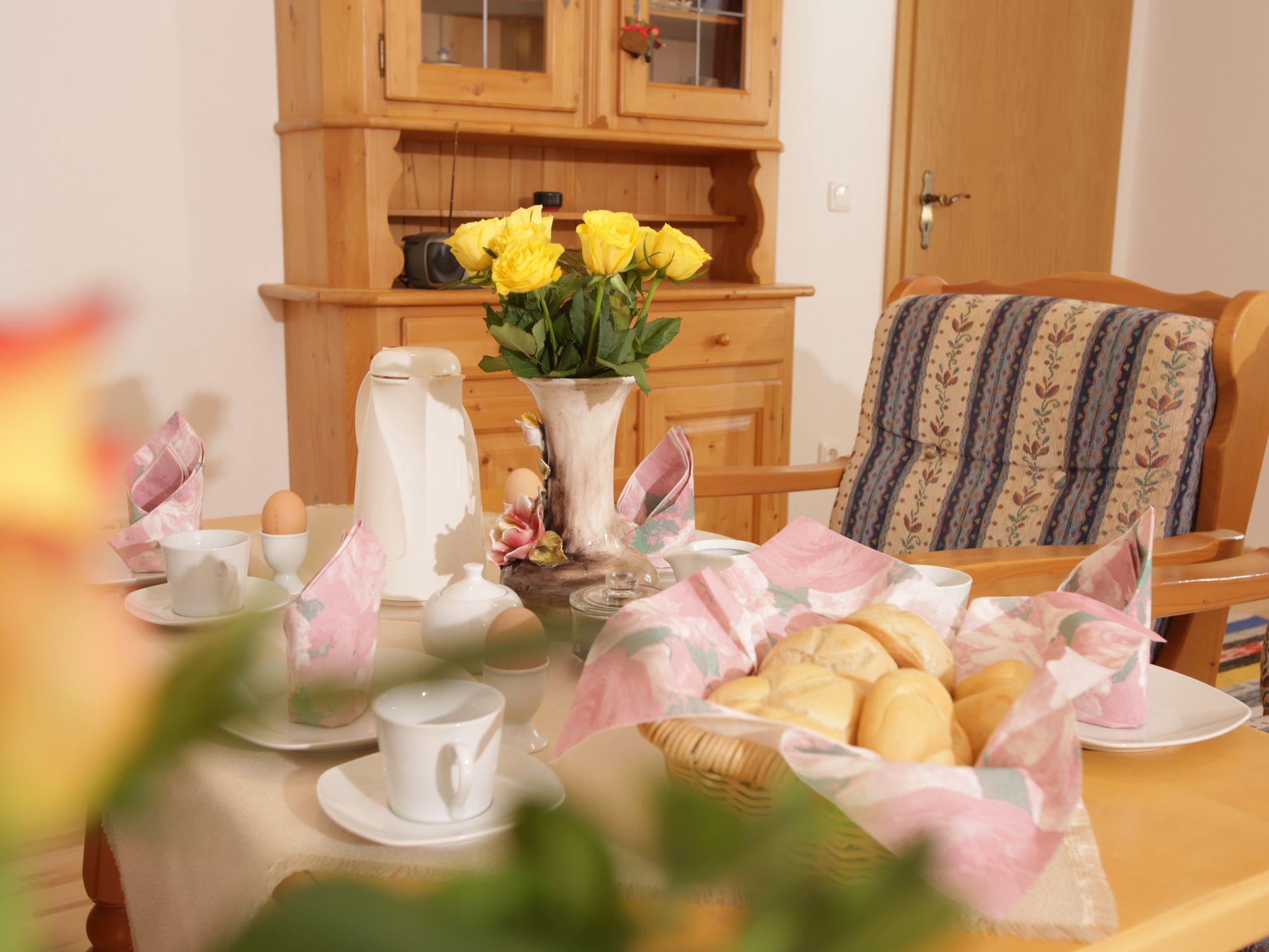 Die Ferienwohnung Rauschbergblick ist 50 qm groß. Sie hat ein separates Schlafzimmer (ein zweites Schlafzimmer kann bei Bedarf dazu gebucht werden), eine extra Küche mit Geschirrspüler, Kühlschrank mit Tiefkühlfach, Wohnzimmer und Badezimmer sowie Balkon mit Sitzgruppe. Bei Anfrage stellen wir ein Gitterbett zur Verfügung. Im Schlafzimmer befindet sich eine ausziehbare Couch. WLAN kostenlos im ganzen Haus. Eine Grillmöglichkeit sowie eine Liegewiese sind vorhanden. Keine Hunde erlaubt. Genießen Sie von Ihrem Balkon den Ausblick zum Rauschberg.