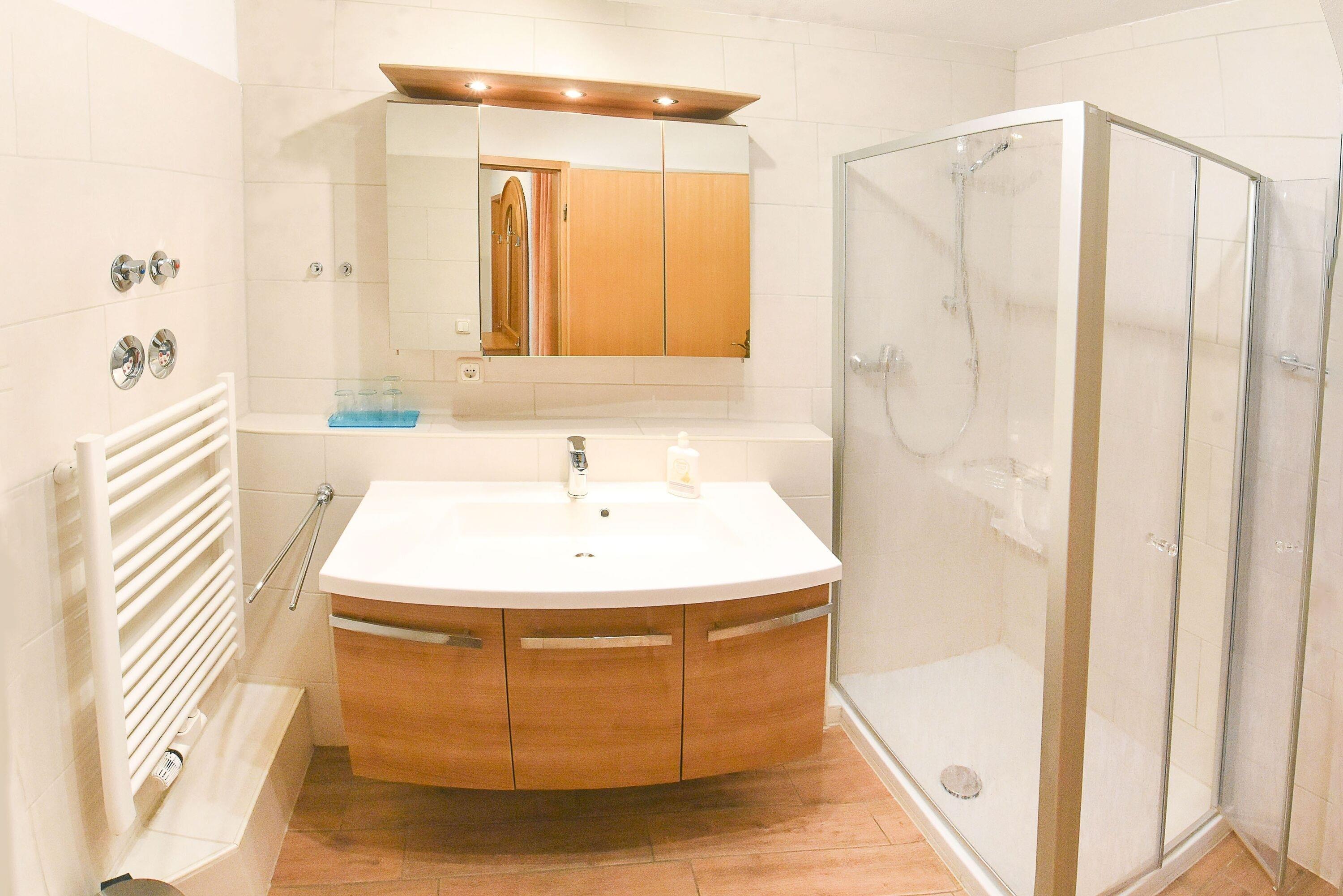 Badeværelse med bruser og badekar