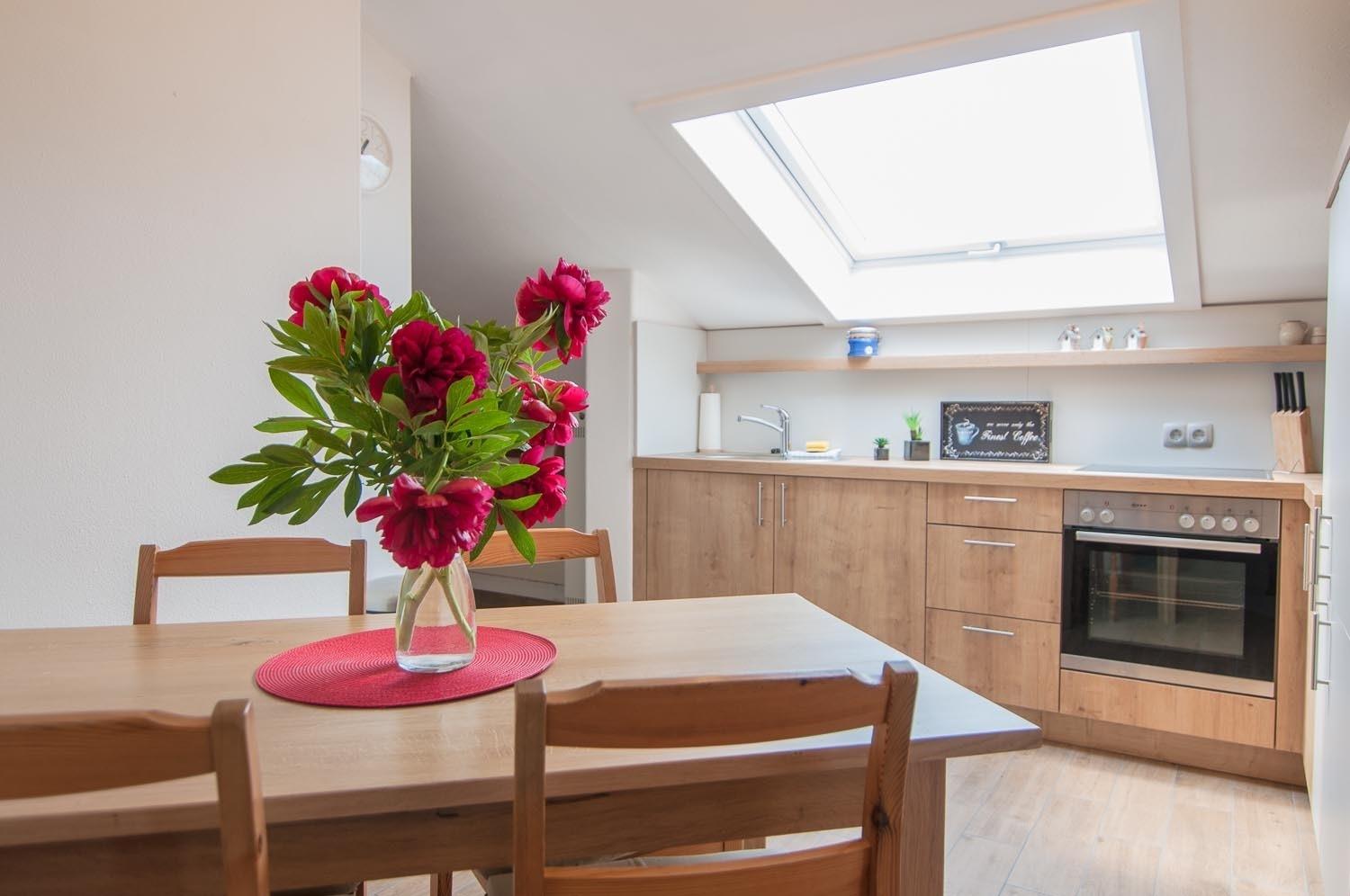 Auf ca 60 qm Wohnfläche finden Sie alles was zu einem schönen Urlaub gehört. Ihre Wohnung verfügt über einen geschmackvoll eingerichteten Wohnraum, vom Wohnzimmer aus haben Sie einen direkten Zugang zu Ihrem eigenen Balkon mit Balkonmöbeln. Eine Wohnküche mit einer Moderne Küchenzeile und Essraum, ein separates Schlafzimmer mit einem Doppelbett (180 x 200cm) Fernseher und einem 3-türigen Kleiderschrank sowie ein neues Badezimmer mit einer Badewanne / Dusche und WC.