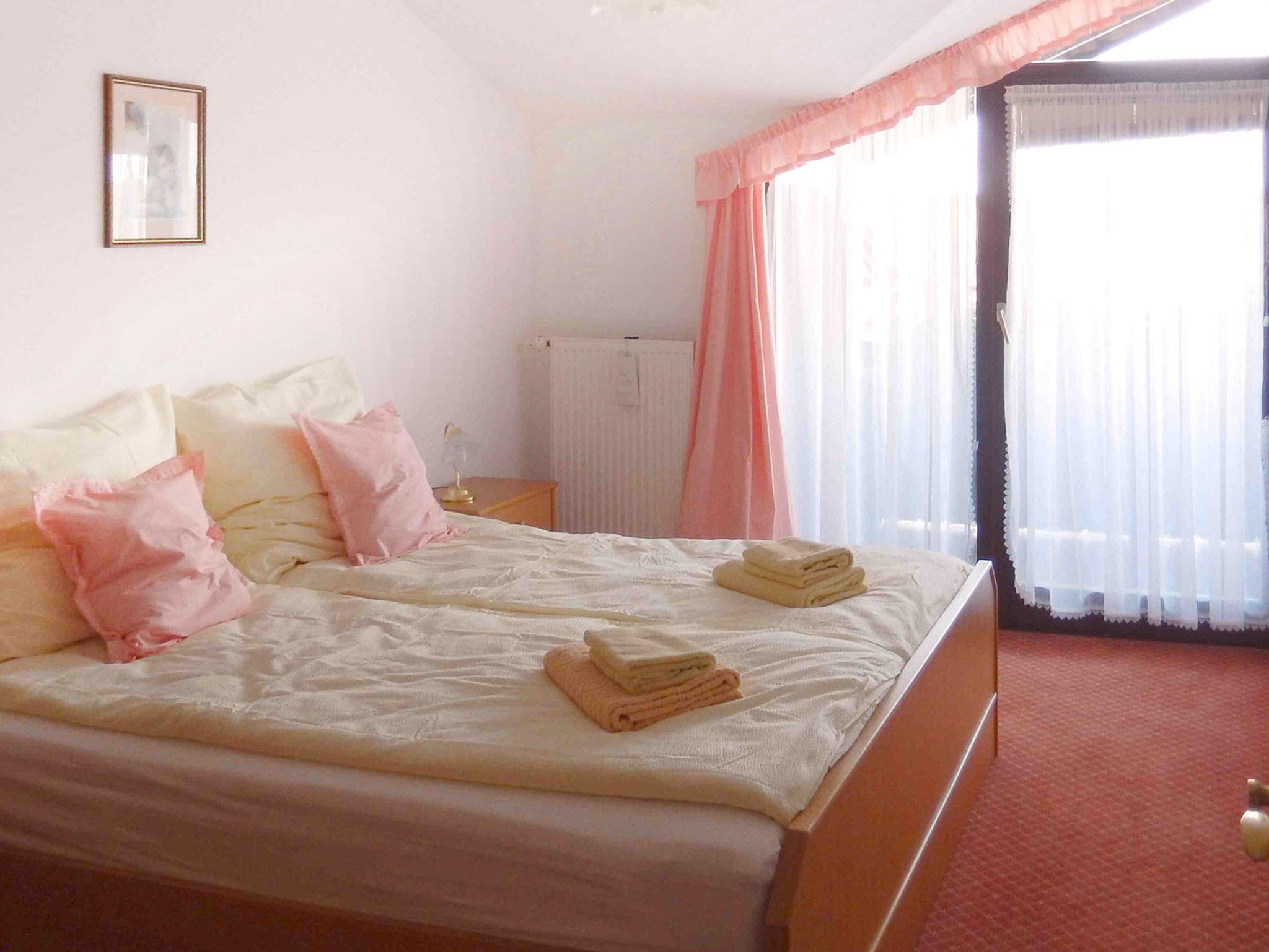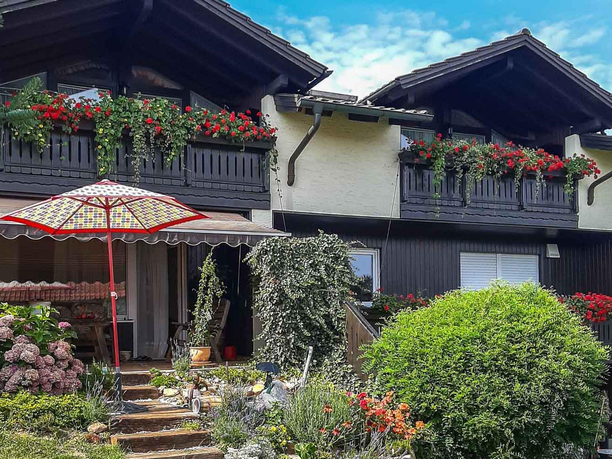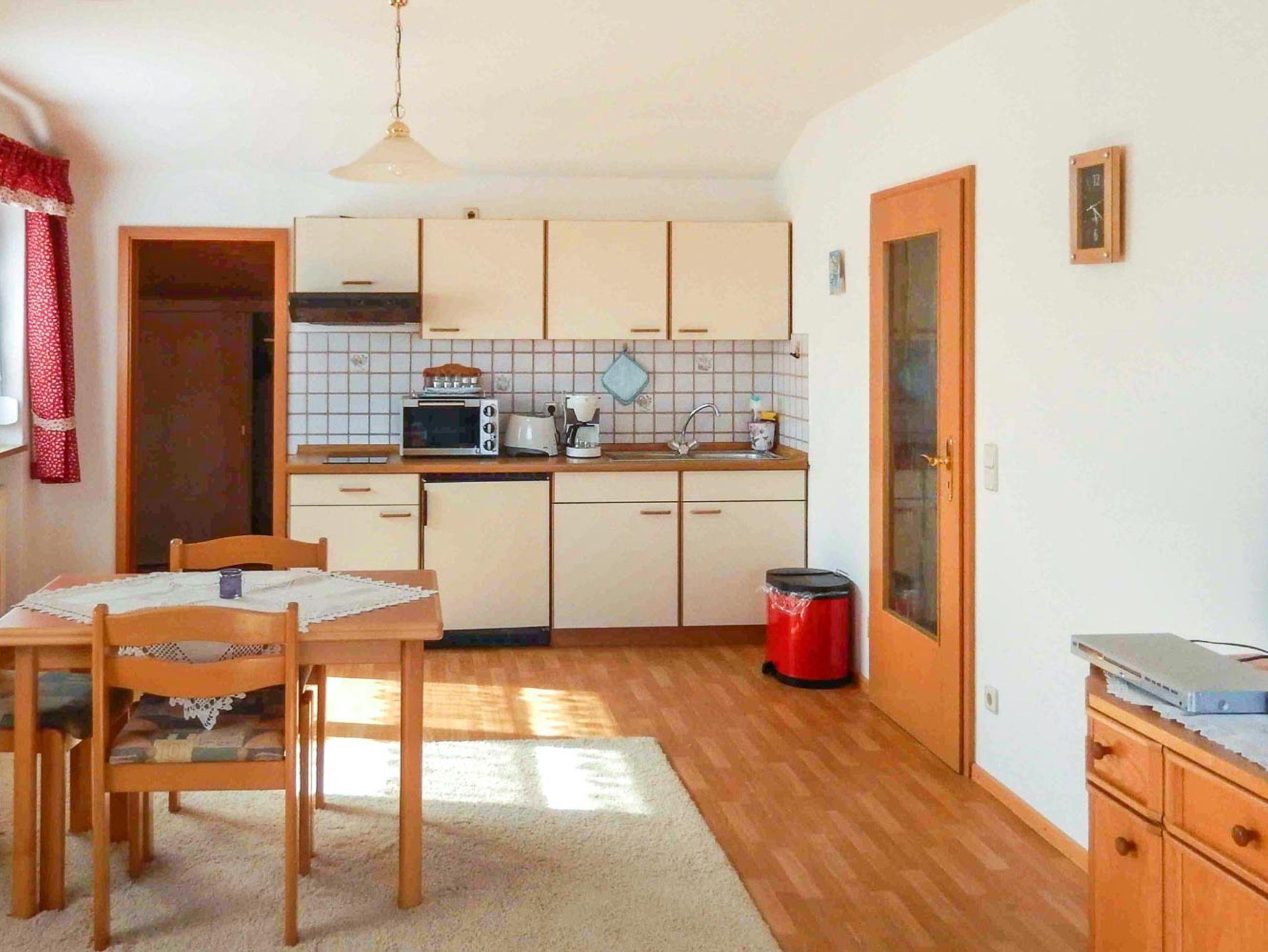 Die Ferienwohnung eignet sich für 5 Personen. Neben einem Schlafzimmer mit Doppelbett steht ein weiteres Zimmer mit einem Einzelbett zur Nutzung bereit. Wohn-Schlafraum mit Schlafcouch für 2 Personen. Der Essbereich/Küche bietet genügend Platz und Komfort zum Kochen, dafür stehen ein modernes Induktionskochfeld, als auch ein kleiner Pizza-Ofen zum Backen zur Verfügung. Aber auch für Unterhaltung ist gesorgt. Relaxen Sie vor dem Fernseher, sehen eine DVD oder lesen ein gutes Buch auf der gemütlichen Couch. Ebenso bietet Ihnen WLAN einen abwechslungsreichen Zeitvertreib. Vom Wohnbereich aus gelangen Sie auf den Balkon, bestückt mit Gartenmöbeln und haben bei klarer Sicht einen wunderbaren Ausblick bis nach Österreich. Das Badezimmer ist ausgestattet mit einer Duschkabine .