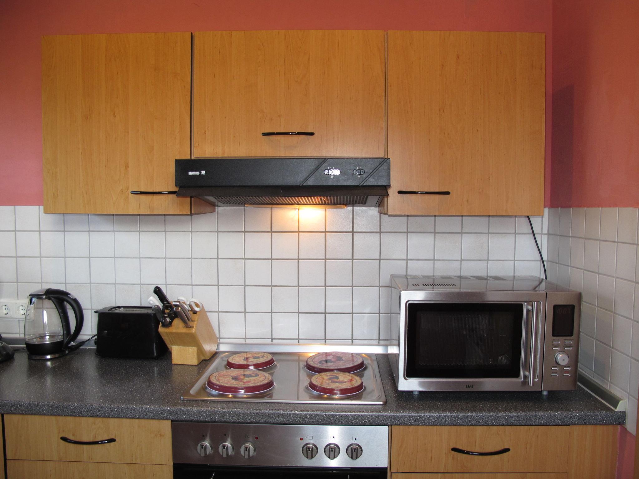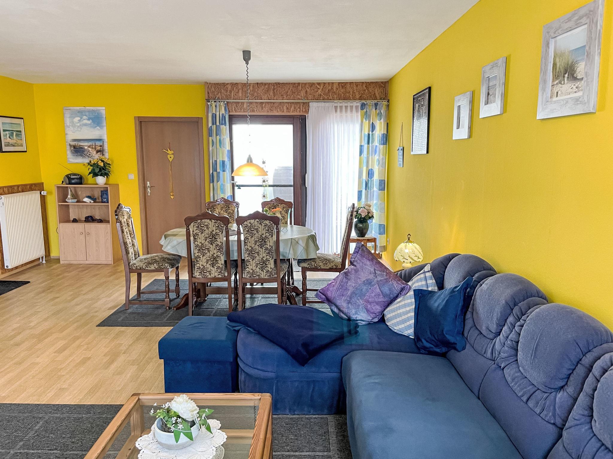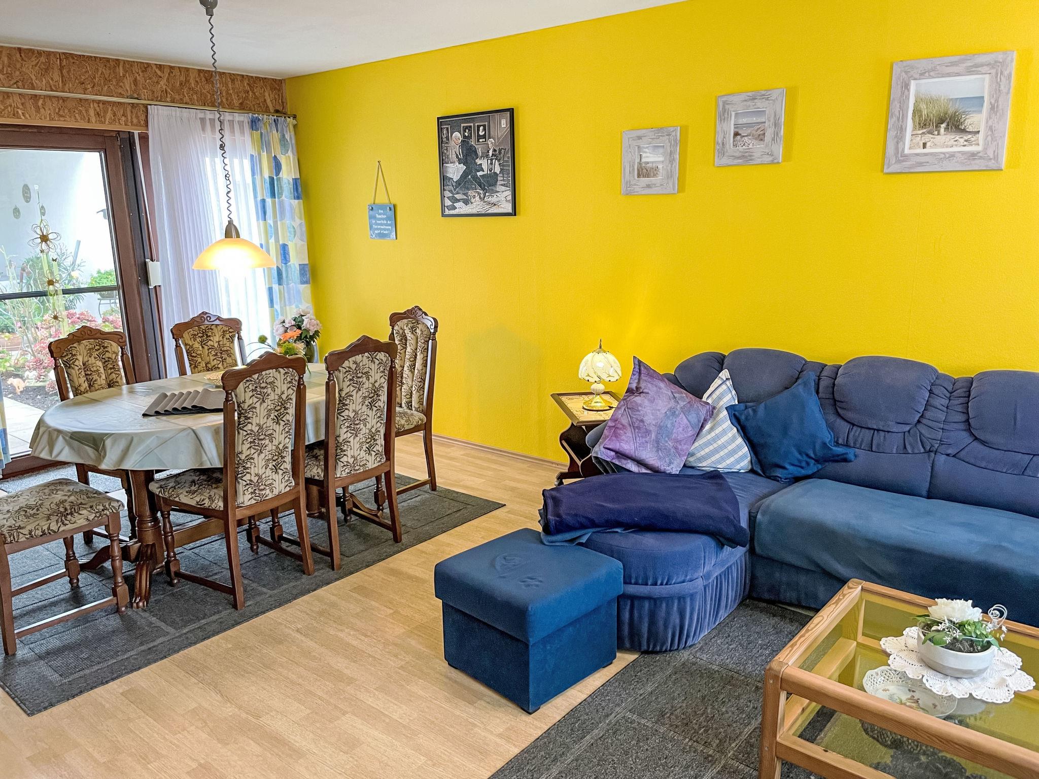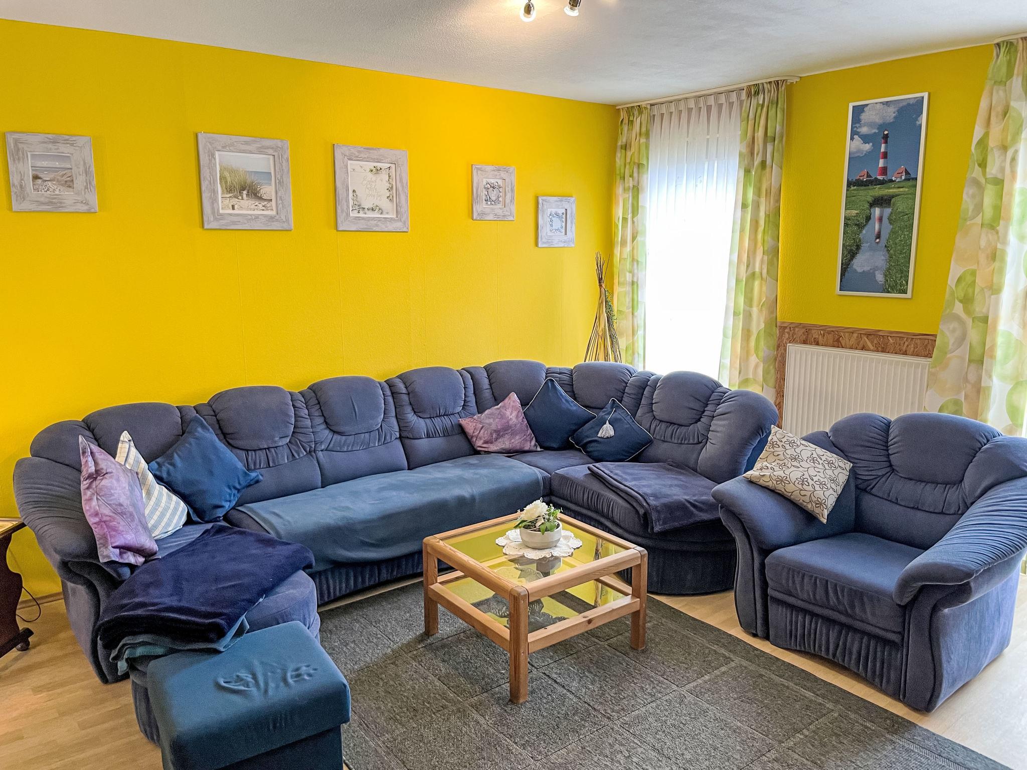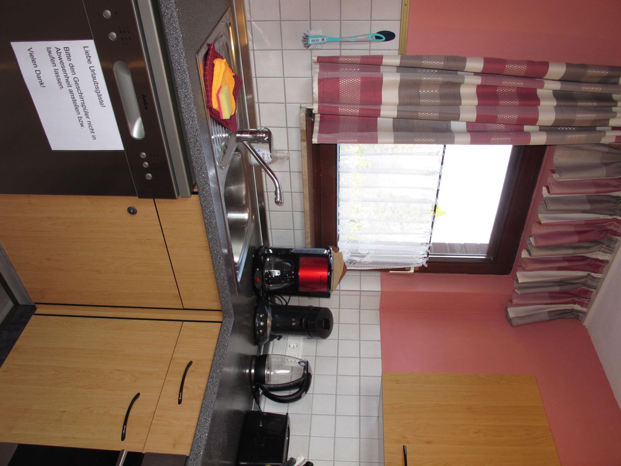 4-room semi-detached house 100 m2, on the ground floor. Cosy furnishings: large living/dining room with satellite TV and hi-fi system. 3 rooms, each room with 1 double bed. Kitchen (4 hot plates, oven, dishwasher, toaster, kettle, microwave, freezer, electric coffee machine). Shower/WC, sep. WC. Gas heating. Deck chairs (2), box-room. Facilities: children's high chair. Please note: non-smokers only. Smoke alarm, fire extinguisher.