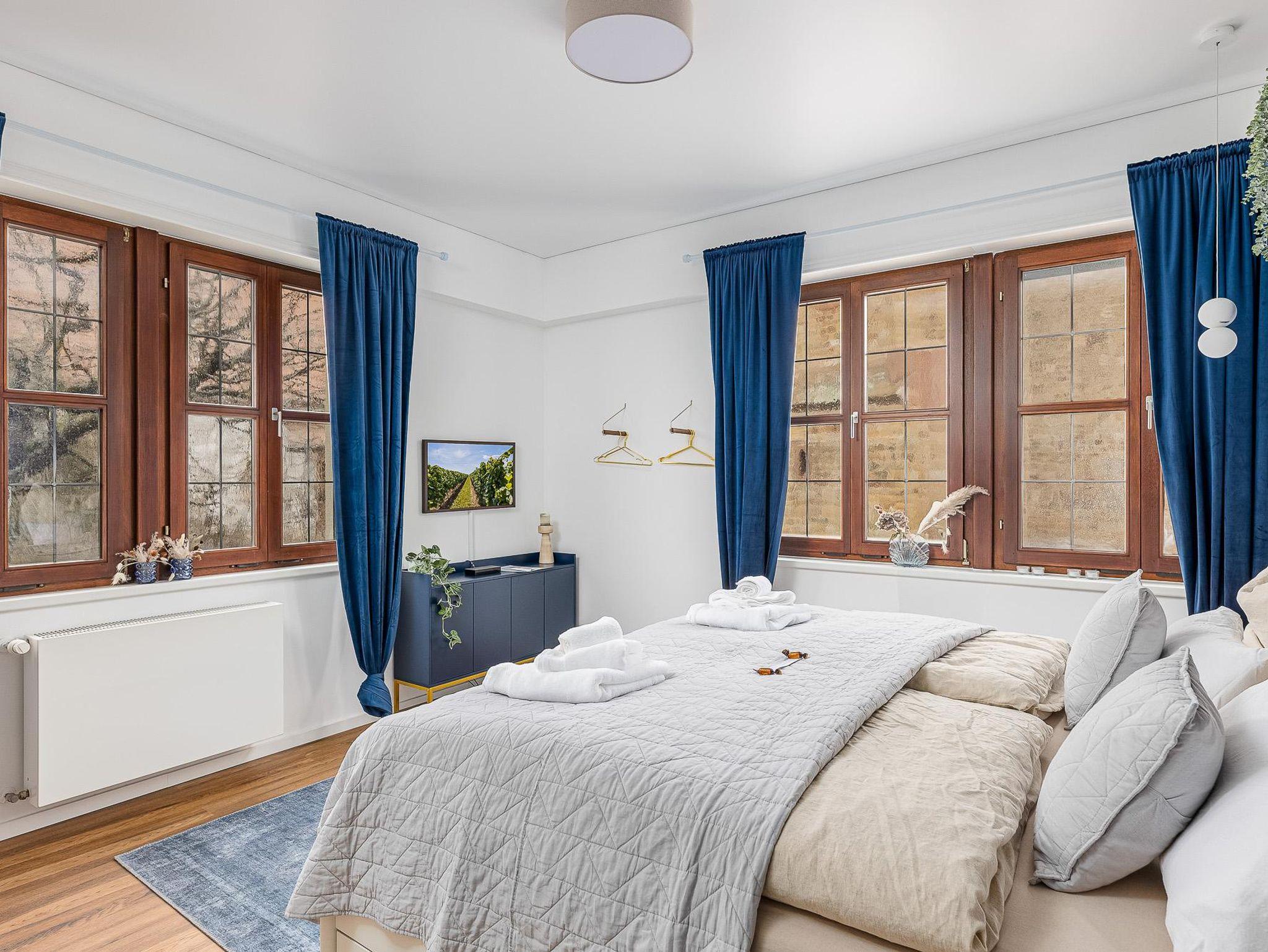 Im ehemaligen rathaus von Ruppertsberg haben wir zwei wunderschöne Wohnungen erstellt, die den Charme des alten Gebäudes mit einem modernen, hochwertigen Standard verbinden. Die Wohnungen liegen zentral auf dem Dorfplatz von Ruppertsberg, was ein toller Ausgangspunkt für Ausflüge und Wanderungen ist. Ein gemütliches Café und die Kirche des Dorfes sind direkte Nachbarn des Gebäudes. Beide Wohnungen haben eine kleine, private Terrasse vor der Tür sowie einen privaten Parkplatz.
