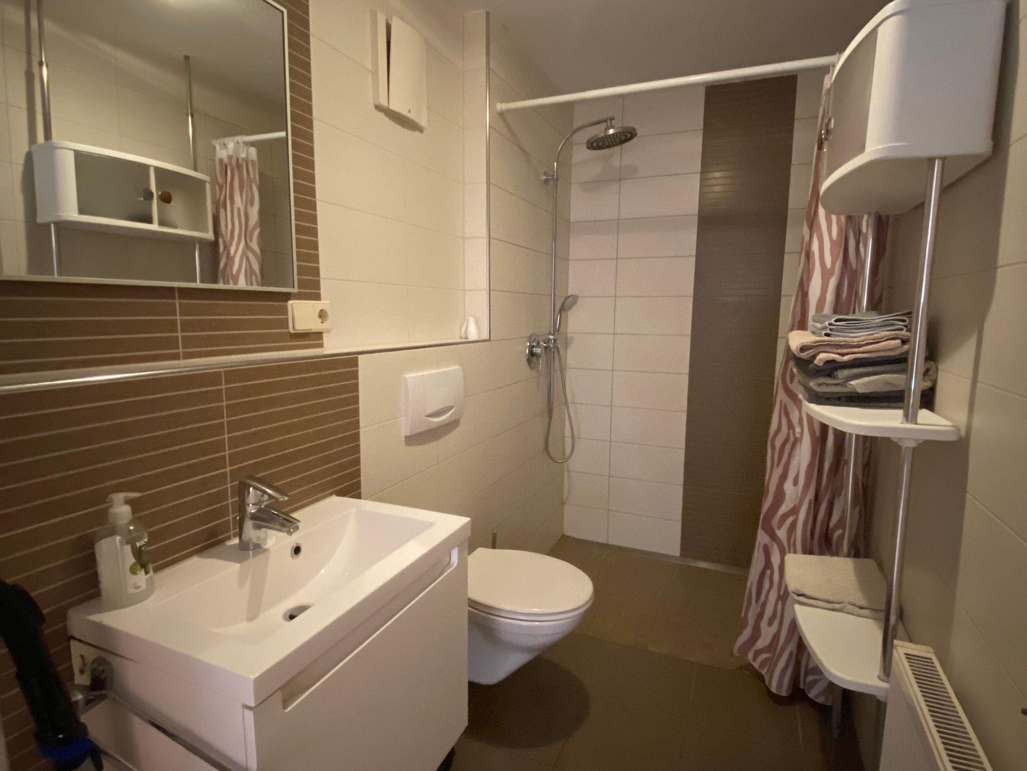 Ganze Wohnung ist vollständig eingerichtet- Möbel auch auf Balkon und auch Wäscheständer vorhanden. Parkmöglichkeit am Anreisetag vorhanden.