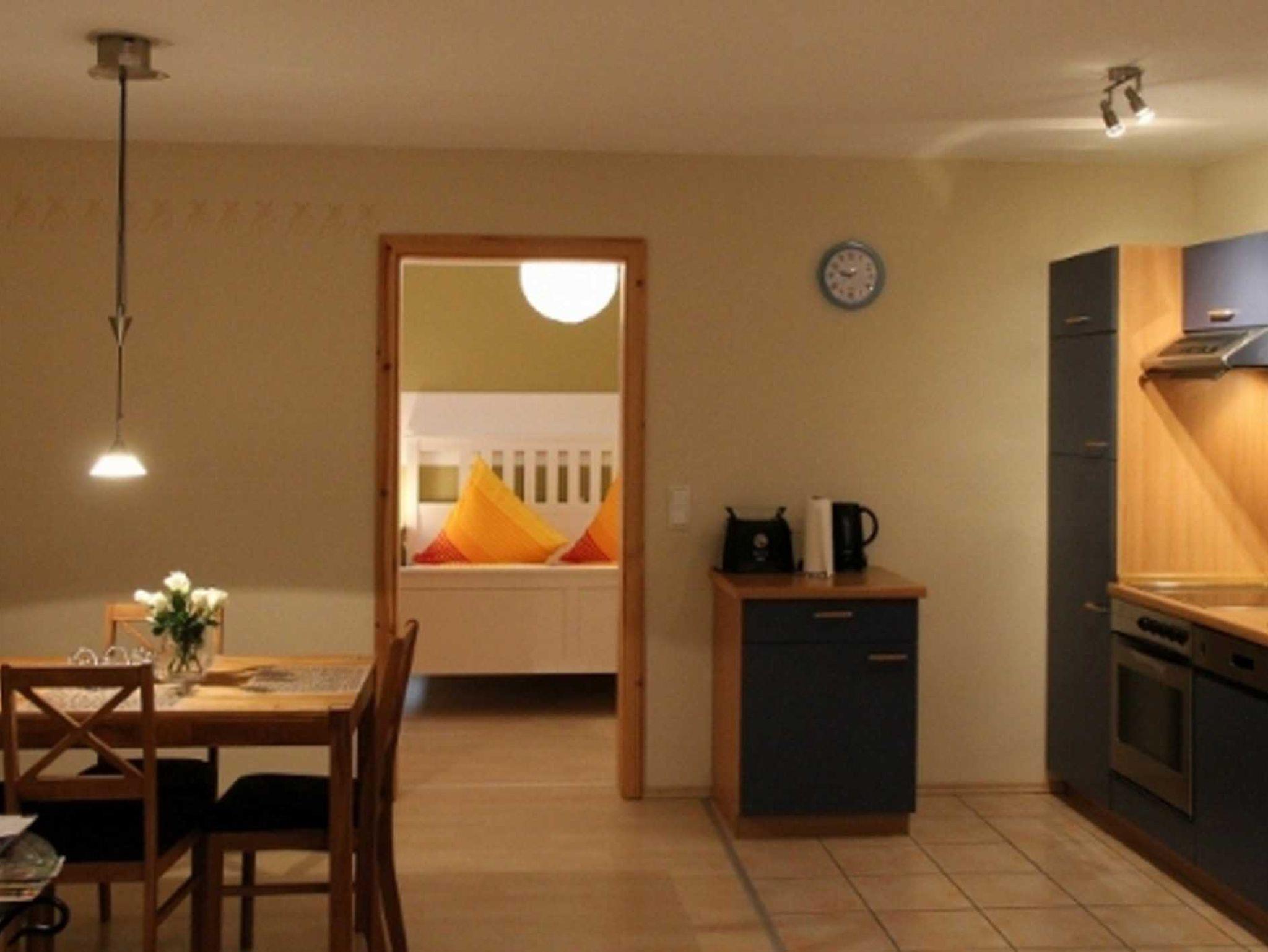 Die Ferienwohnung An der Runz (Souterrain 50 qm) besteht aus einem Schlafraum mit einem Doppelbett und einem Etagenbett. Die Wohnküche ist mit Cerankochfeld mit Backherd, großem Kühlschrank (inkl. Gefrierfach), Spülmaschine, einer Kaffeepadmaschine, Wasserkocher und Toaster sehr gut ausgestattet. Im Wohnbereich befindet sich außer einem Esstisch noch eine Couch, die auch als Schlafcouch verwendet werden kann. Bettwäsche, Hand- und Geschirrtücher sind in unserer Ferienwohnung inklusive. Für unsere Gäste steht kostenloses WLAN zur Verfügung. Vor Ort fällt eine Kurtaxe in Höhe von 1,45 EUR pro Person pro Tag an. Kinder von 0-11 Jahren zahlen keine Kurtaxe.
