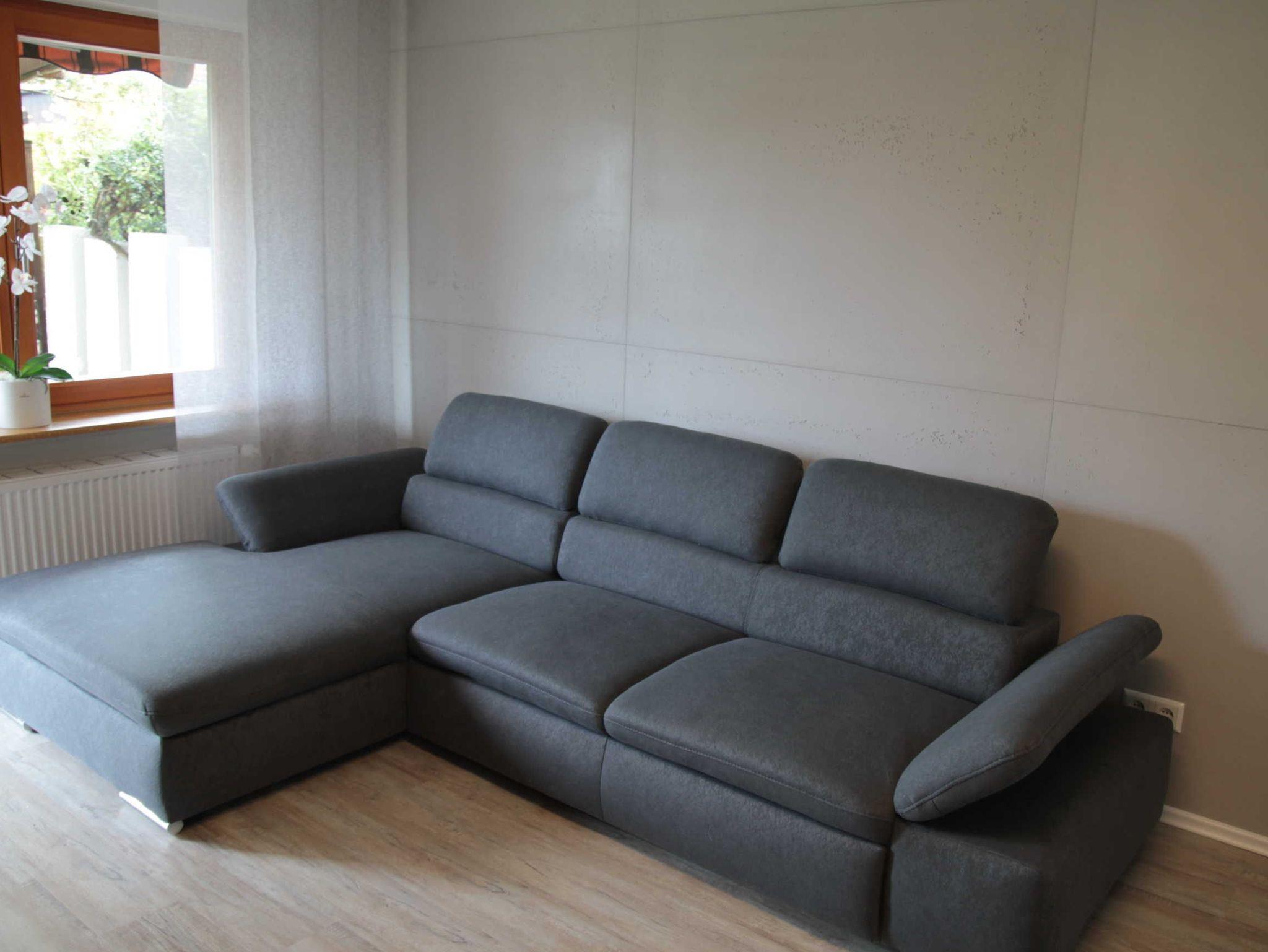 Wohn- und Schlafzimmer: Schlafzimmer mit Boxspringbett 160x200 cm und 1 Etagenbett 90x200 cm, Wohnzimmer mit Schlafsofa 140x200 cm.