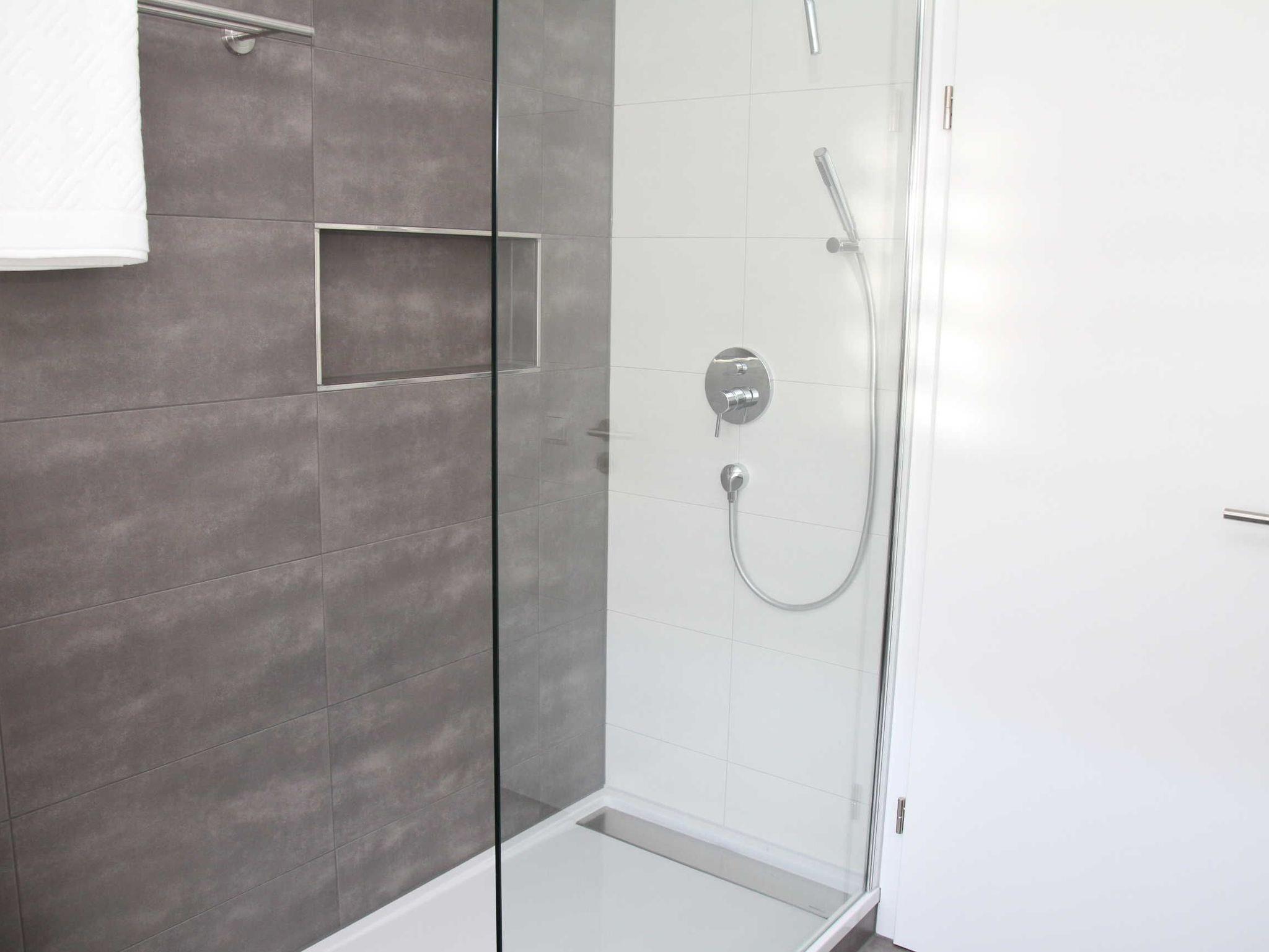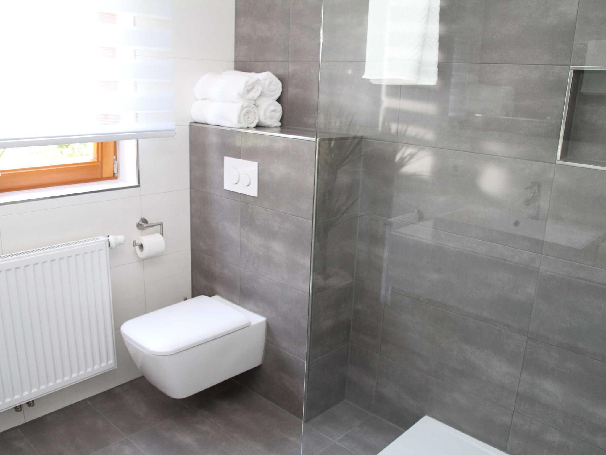 Das Badezimmer ist ausgestattet mit Dusche und WC mit Föhn.