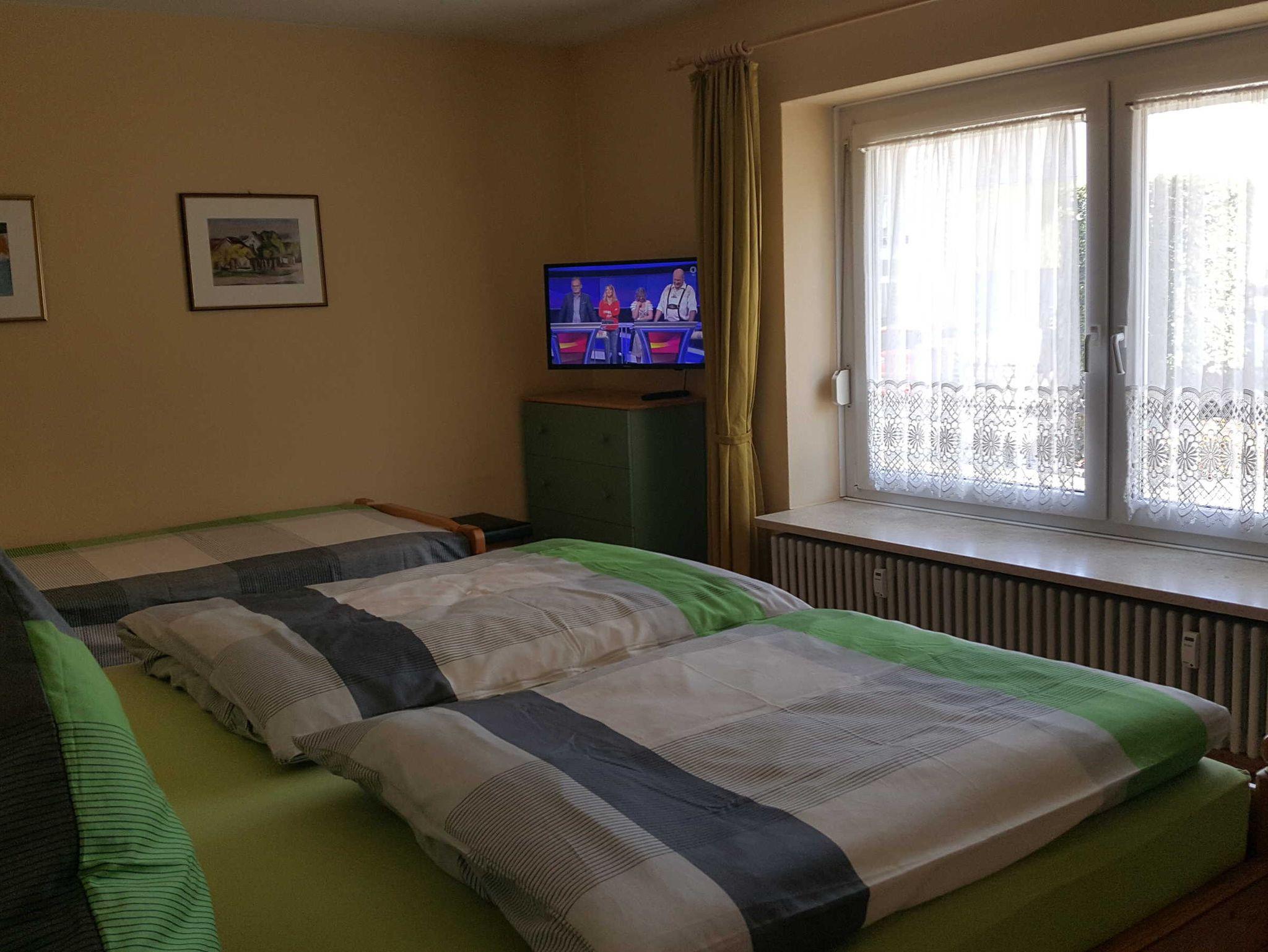 2 Schlafzimmer, guter Aufenthaltsbereich mit aller Ausstattung. Etwas ältere Einrichtung, aber durchaus gemütlich. Achtung: 1 Schlafzimmer geht direkt zur Strasse, Lärmempfindliche Personen sollten das Zimmer zum Hof nutzen.
