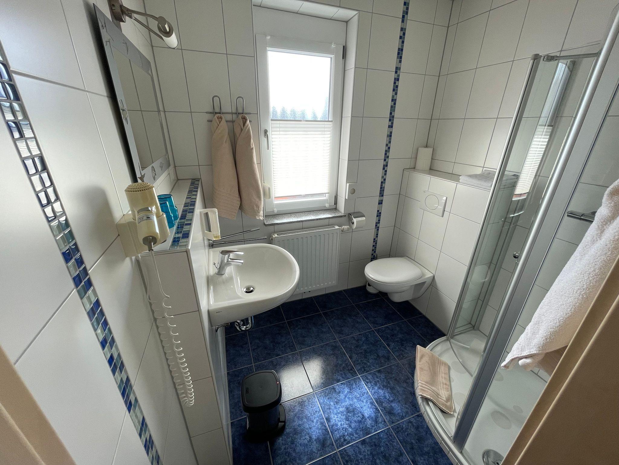 Nichtraucher-Ferienwohnung Nr. 3 60qm mit Balkon/Terasse verfügt über 2 Schlafräumen, ein Schlafzimmer mit Doppelbett und das zweite Schlafzimmer mit Etagenbett und einem Einzelbett. Die Wohnung ist allergikergerecht und bietet eine Essecke, Sitzgelegenheit, Fernseher Kab/Sat, Badezimmer mit Dusche und WC. Handtücher sind vorhanden. Die Küchenzeile ist ausgestattet mit Backofen, Geschirrspüler, Kaffeemaschine, Wasserkocher, Kühlschrank, Mikrowelle und Toaster.