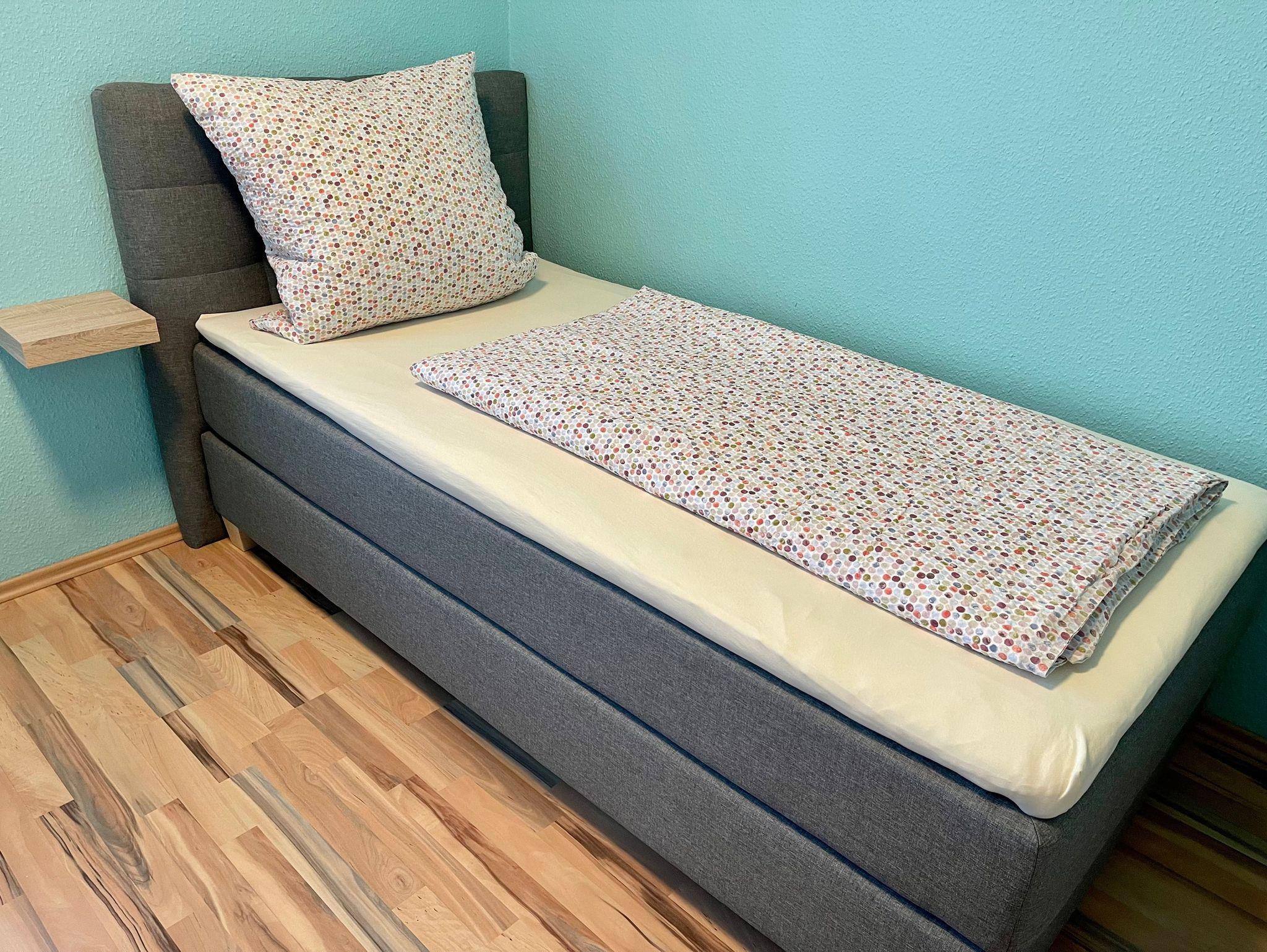 Nichtraucher-Ferienwohnung Nr. 3 60qm mit Balkon/Terasse verfügt über 2 Schlafräumen, ein Schlafzimmer mit Doppelbett und das zweite Schlafzimmer mit Etagenbett und einem Einzelbett. Die Wohnung ist allergikergerecht und bietet eine Essecke, Sitzgelegenheit, Fernseher Kab/Sat, Badezimmer mit Dusche und WC. Handtücher sind vorhanden. Die Küchenzeile ist ausgestattet mit Backofen, Geschirrspüler, Kaffeemaschine, Wasserkocher, Kühlschrank, Mikrowelle und Toaster. / Vor Ort fällt Kurtaxe in Höhe von 1EUR pro Person pro Tag an. Kinder von 0-11 Jahren zahlen keine Kurtaxe.