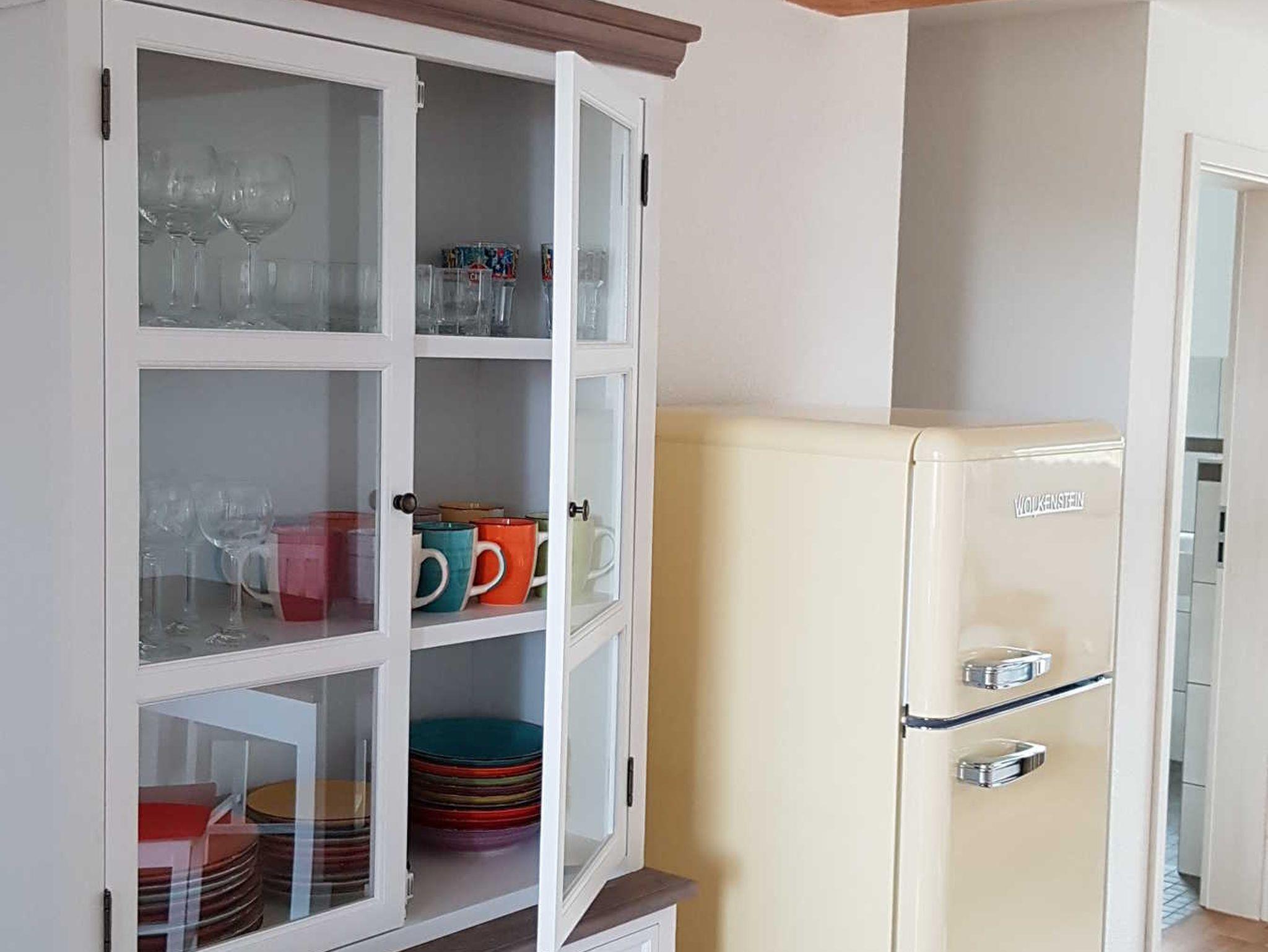 Im EG befindet sich in beiden FeWo der Wohnbereich mit ausgestatteter Küche (Senseo-Pads Kaffeemaschine), Essbereich (mit Kühlschrank und Gefrierfach) und Bad.