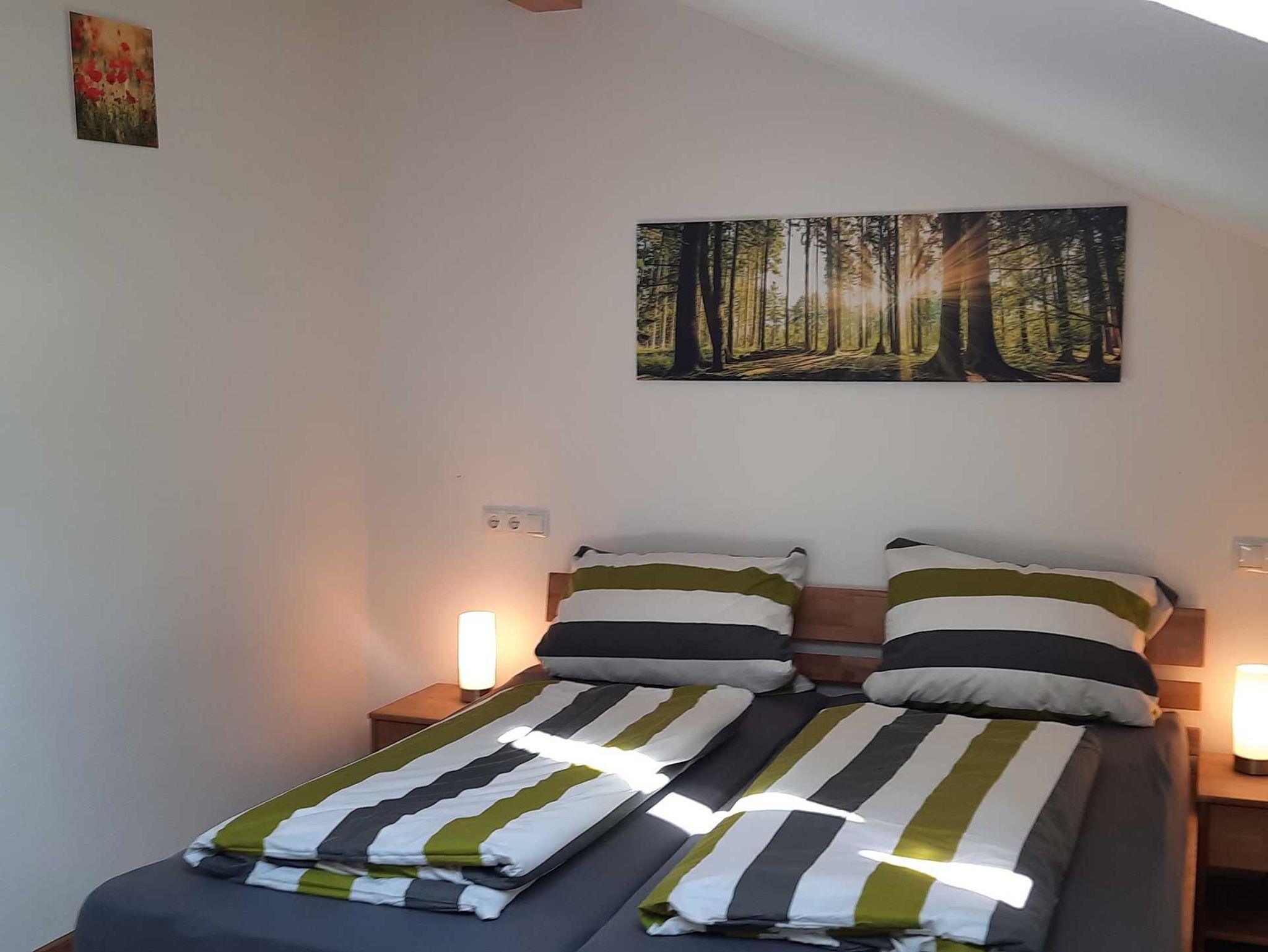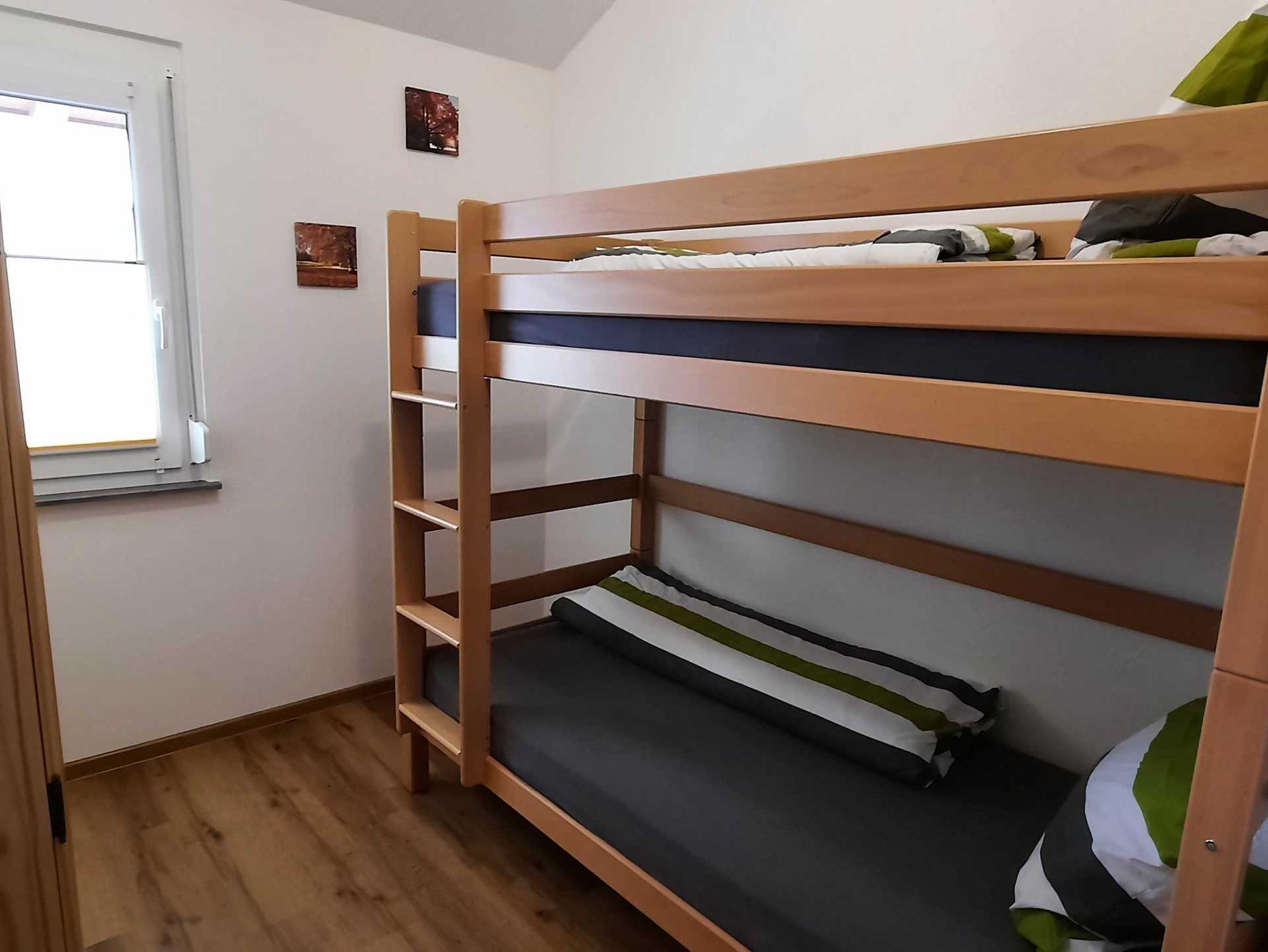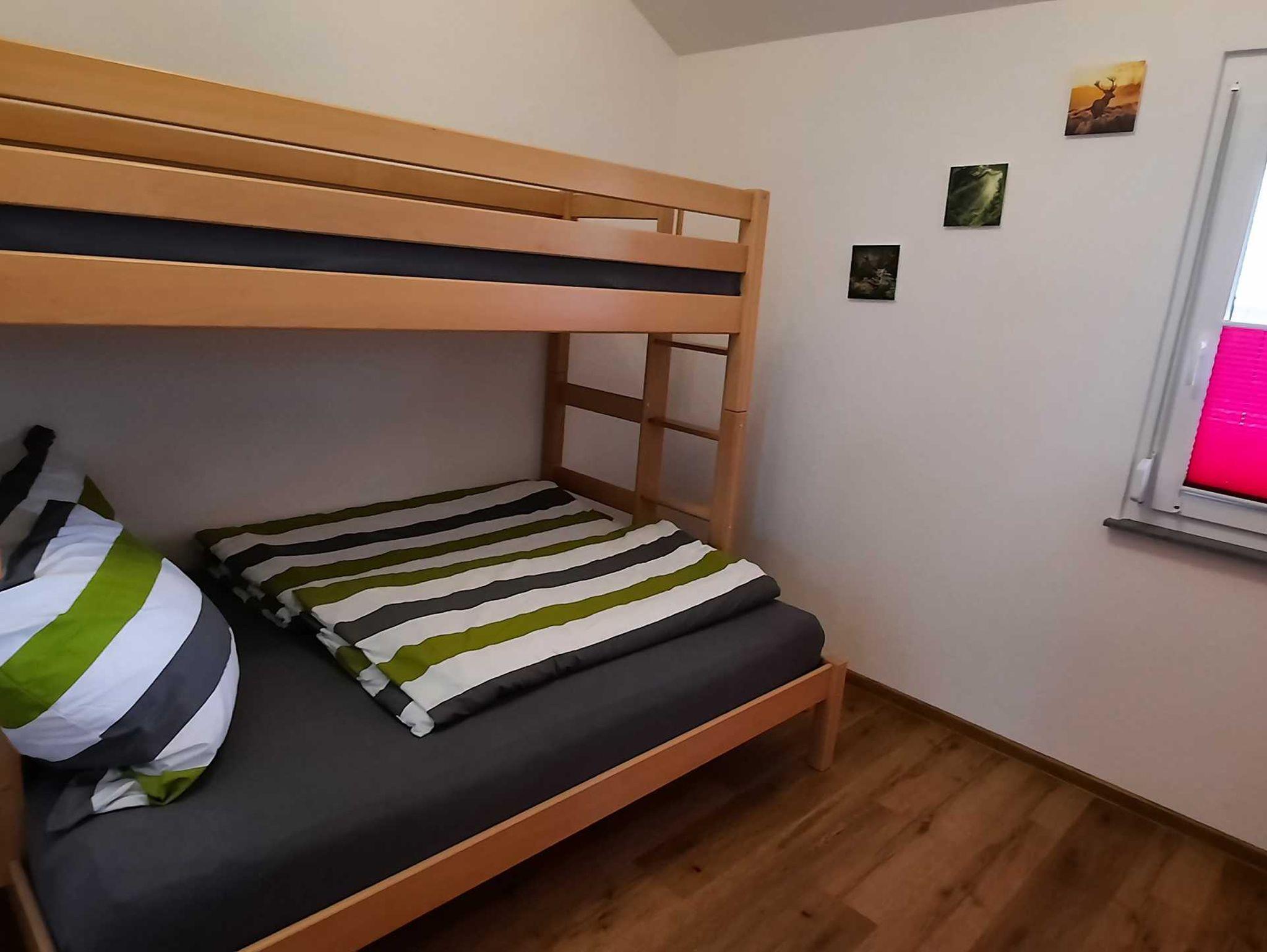 Zimmer 1 mit Doppelbett für 2 Personen. Zimmer 2 mit Hochbett für 2 Personen. Zimmer 3 mit Hochbett für bis zu 3 Personen (unteres Bett 140 x 200 cm, oberes 90 x 200 cm). Bettwäsche und Handtücher für den hausinternen Bereich stellen wir Ihnen zur Verfügung, jedoch bieten wir kein Frühstück oder keine Hygieneartikel oder ähnliches an.