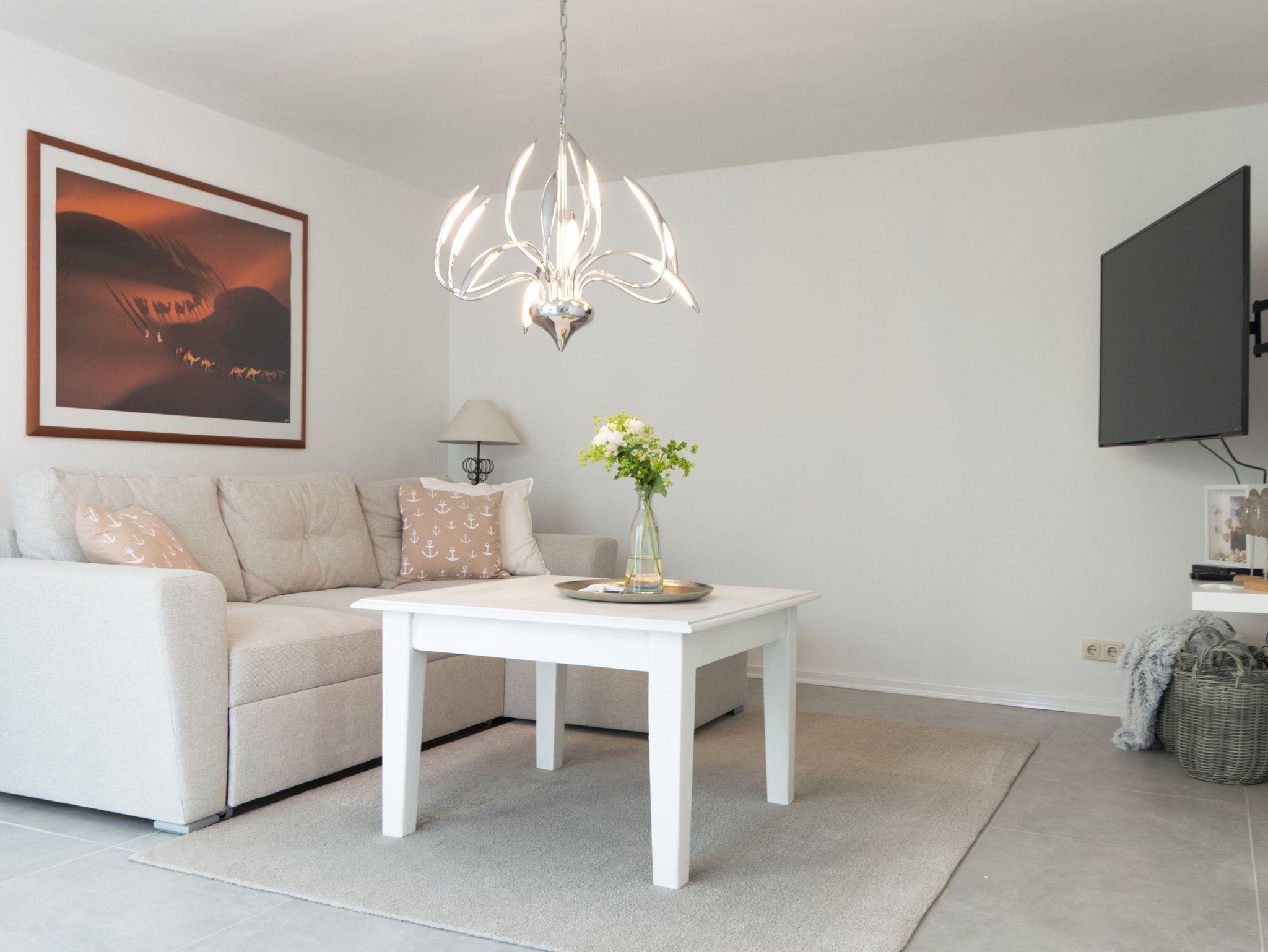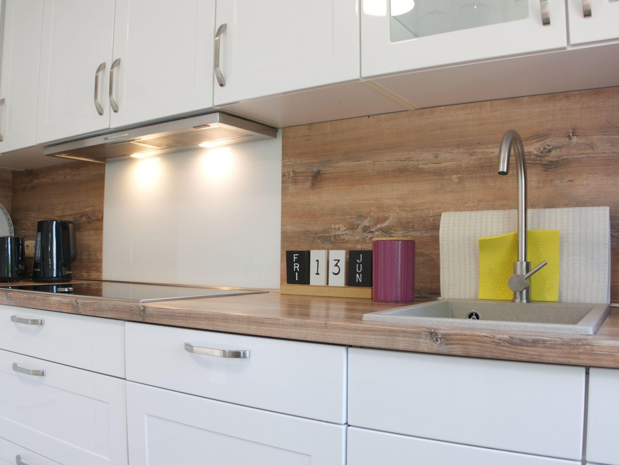 Die voll ausgestattete Küche bietet alles, was Sie für eine Selbstversorgung benötigen, inklusive Herd, Backofen, Kühlschrank, Spülmaschine und Kaffeemaschine. Im Wohnbereich sorgen eine bequeme Couch, ein Flachbild-TV und liebevoll ausgewählte Details für Wohlfühlatmosphäre.