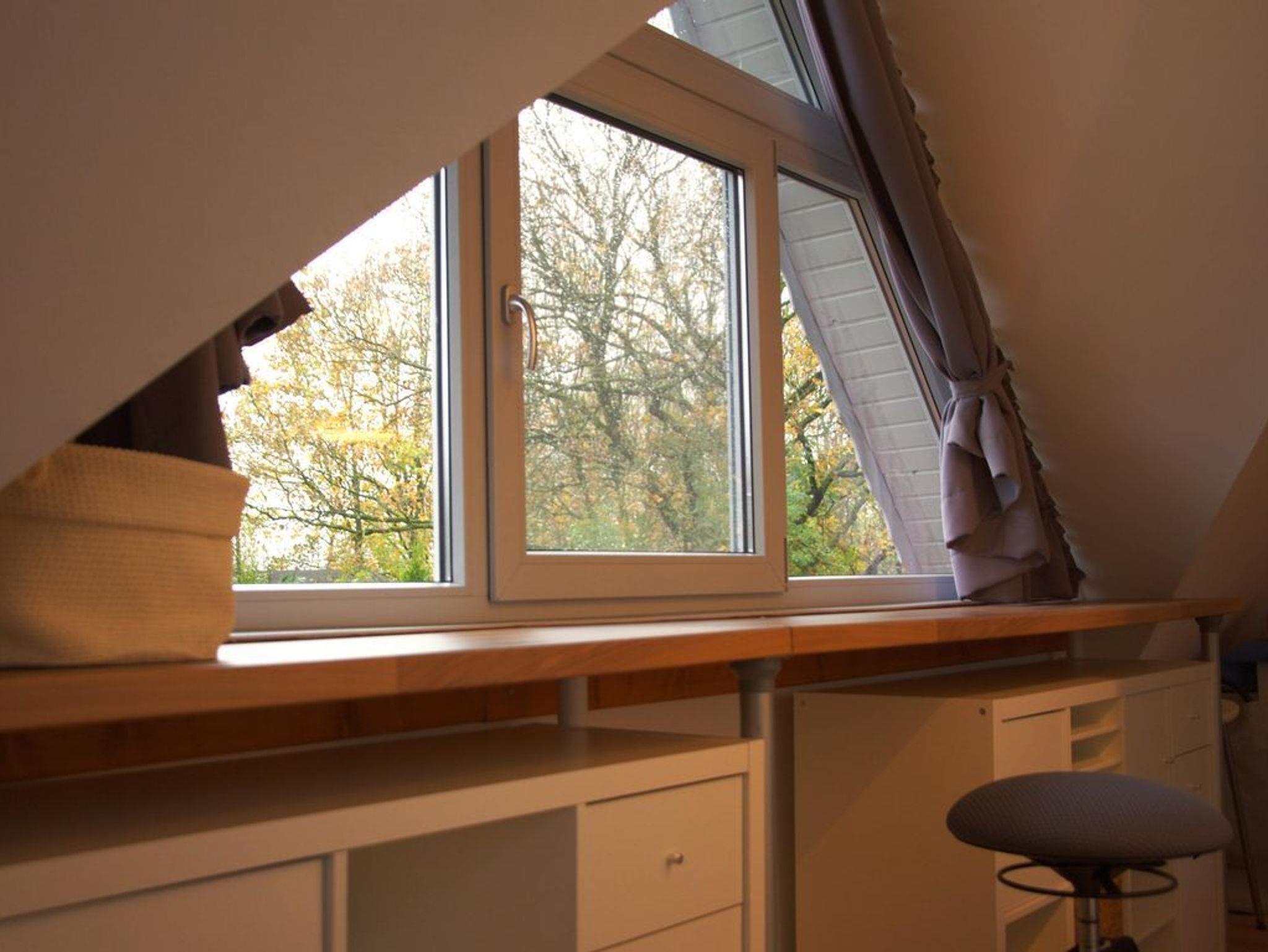 Im 1. Stock haben Sie die Möglichkeit, am fenstergelegenen Schreibtisch zu arbeiten.