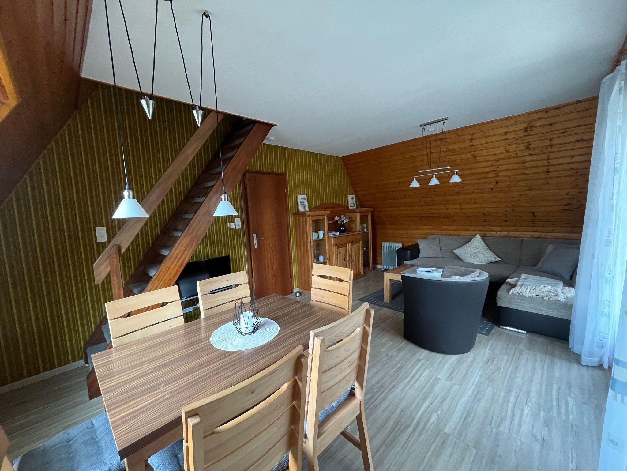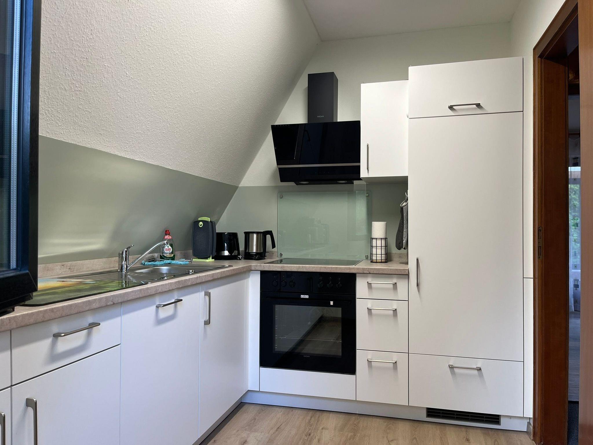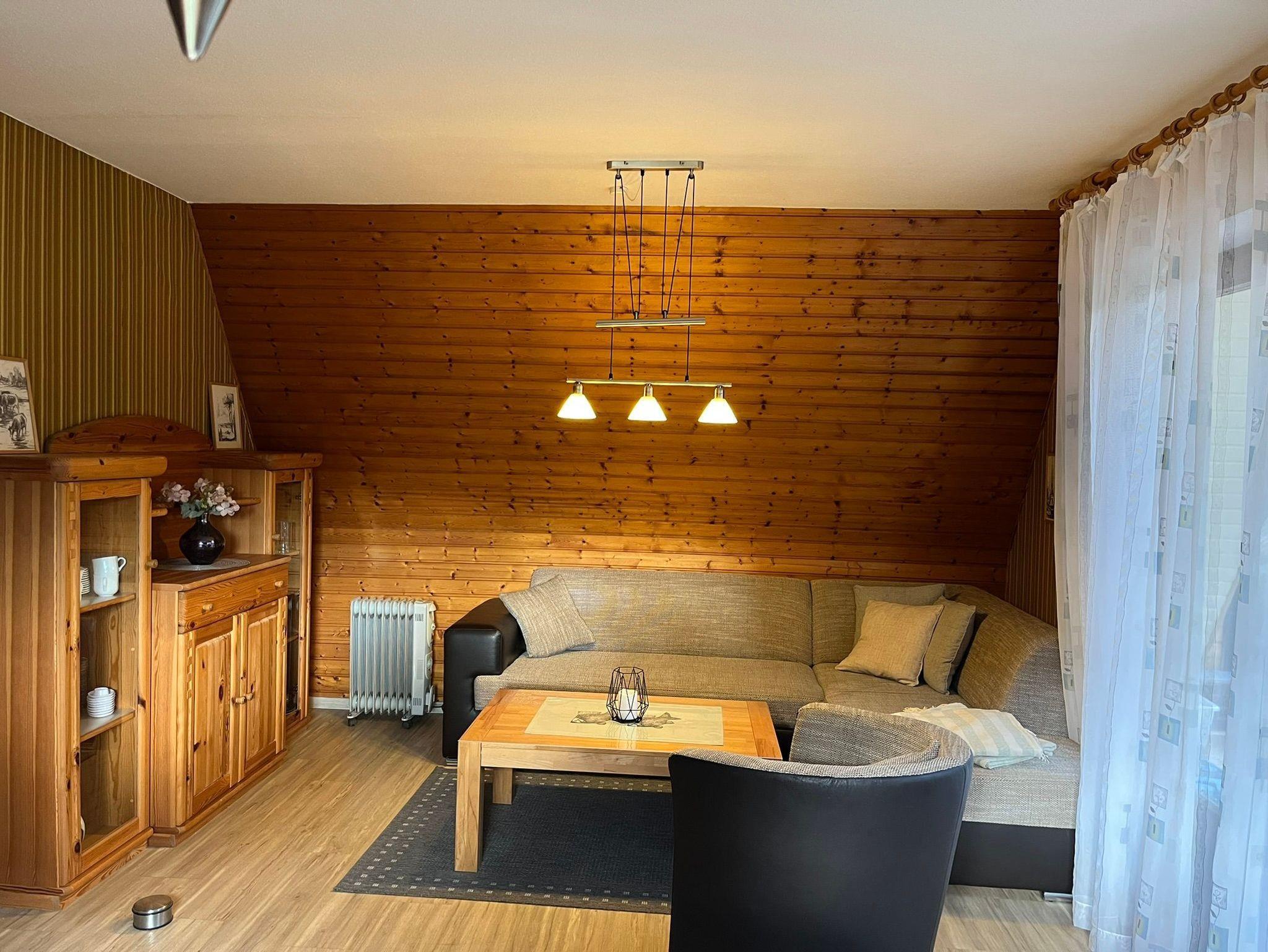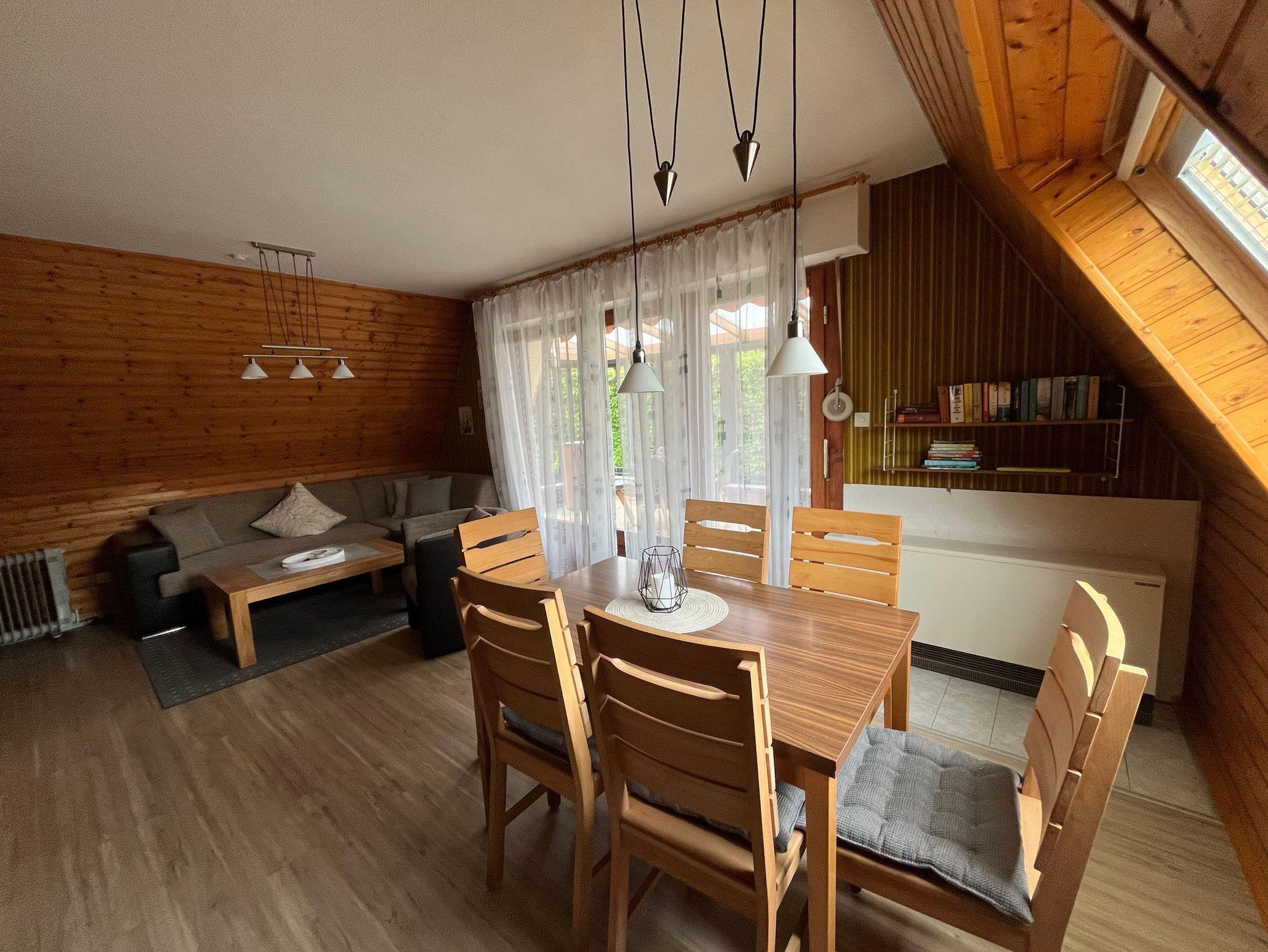 Das Haus selbst ist ansprechend eingerichtet und bietet allen Komfort, den Sie für einen erholsamen Aufenthalt benötigen. Für Familien mit Kleinkindern stehen ein Kinderbett, ein Hochstuhl sowie eine Treppenkindersicherung zur Verfügung. Im neu erbauten Wintergarten können Sie zu jeder Jahreszeit entspannen, während an kühlen Tagen ein Pellets-Kaminofen für wohlige Wärme sorgt.