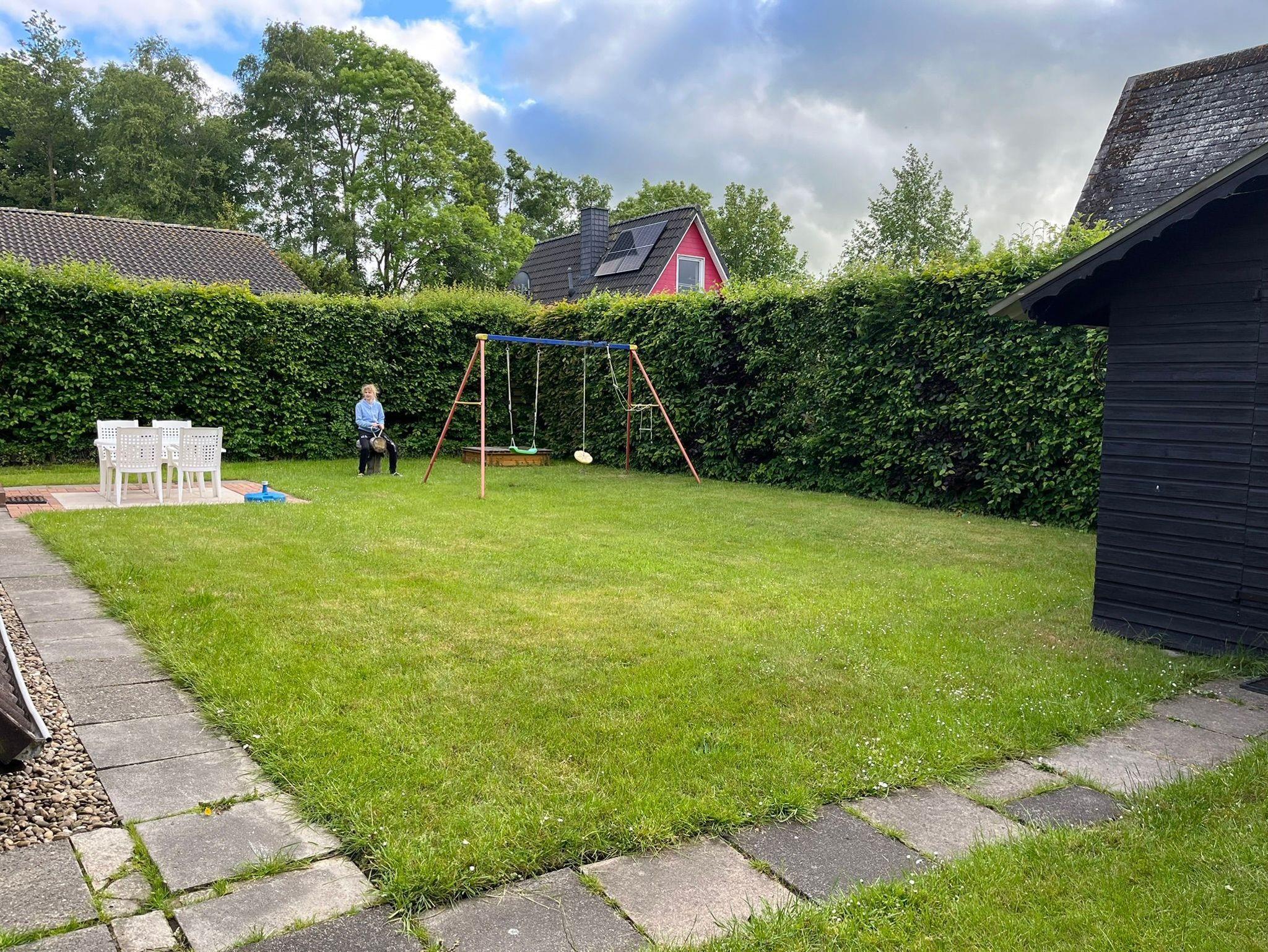 Dieses Ferienhaus ist die perfekte Wahl für Familien mit Kleinkindern, da es nicht direkt am Wasser liegt und somit Sicherheit und Entspannung kombiniert. Der große, durch eine 2 Meter hohe Hecke geschützte Garten bietet viel Privatsphäre und zahlreiche Spielmöglichkeiten. Wippe, Schaukel und Sandkasten sorgen für Spaß bei den Kleinen, während verschiedene Fahrräder für Ausflüge zur Verfügung stehen. Zusätzlich stehen ein 3er Kanadier und ein Ruderboot (mit der Möglichkeit, einen Außenbordmotor anzubringen) für Wasseraktivitäten bereit.