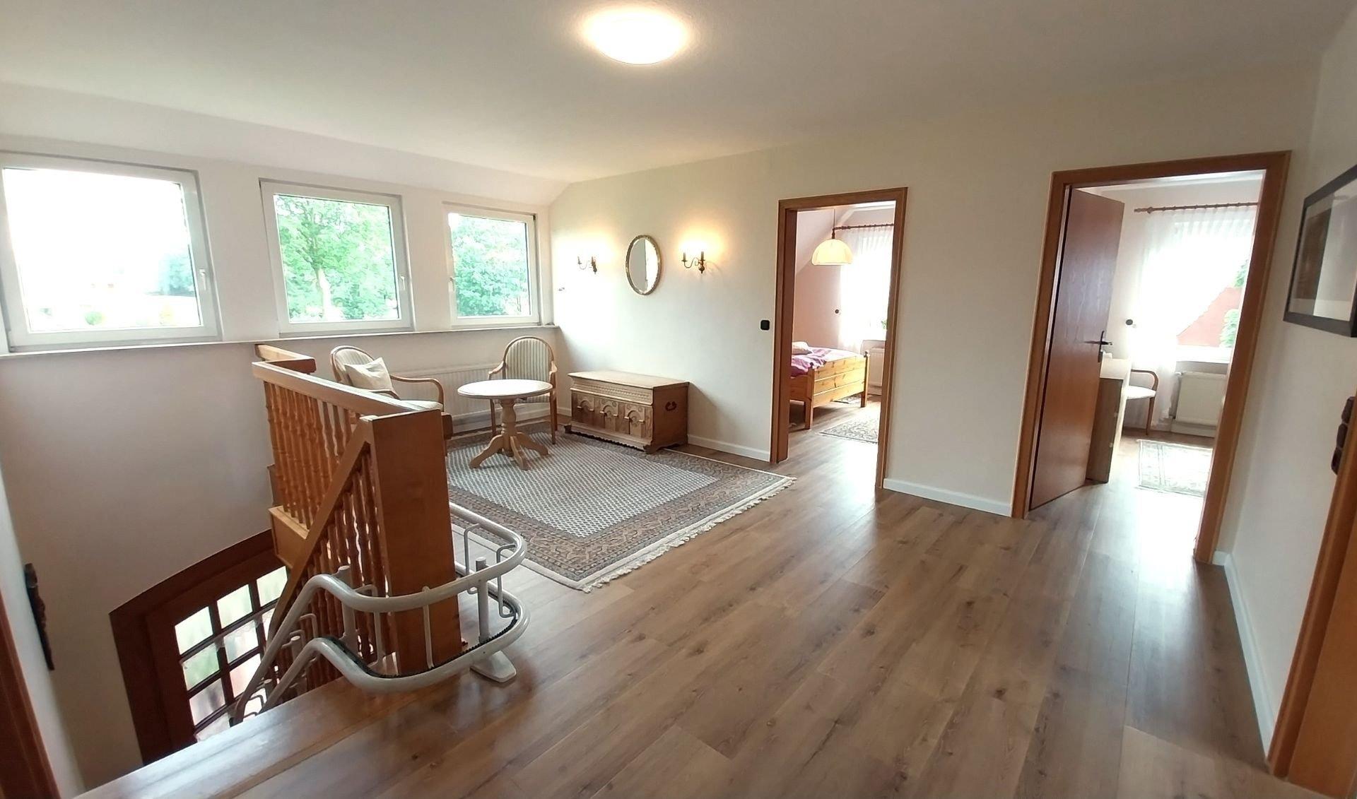 Erleben Sie einen unvergesslichen Urlaub im Friesenhaus Anneliese in Südbrookmerland an der Nordsee. Mit 200 Quadratmetern Wohnfläche, drei Schlafzimmern, ein Babyzimmer, zwei Duschbädern bietet unser Ferienhaus Platz für bis zu sechs Gäste. Die liebevoll ausgewählten Möbel schaffen eine einladende und gemütliche Atmosphäre.Für unsere kleinen Gäste stellen wir gerne ein Kinderbett und einen Hochstuhl zur Verfügung.Im Inneren erwartet Sie ein gemütliches Interieur mit Smart-TV und kostenlosem WLAN. Eine Waschmaschine, Trockner, ein Haartrockner und Bettwäsche sind ebenfalls vorhanden.Ausstattung Obergeschoss:1 Schlafzimmer mit Doppelbett (140 x 200), Kleiderschrank und Babyzimmer mit Gitterbett und Wickelkommode1 Schlafzimmer mit Doppelbett (180 x 200) und Kleiderschrank1 Schlafzimmer mit Doppelbett (180 x 200) und Kommode1 Duschbad mit Badewanne, WC, Waschbecken und FönAusstattung Erdgeschoss:Küche mit Essplatz und KinderhochstuhlGenießen Sie den Komfort unserer voll ausgestatteten Küche mit Geschirrspüler, Mikrowelle, Wasserkocher, Kaffeemaschine, Grundausstattung Töpfe, Pfannen, Besteck und Geschirr.1 Duschbad mit WC und Waschbecken1 Gäste WCWohn- und Esszimmer mit Smart-TV und großen Fensterfronten für ein helles Raumgefühl.Abstellraum mit Waschmaschine und Trockner.Das Ferienhaus verfügt über bis zu vier Parkplätze, eine Terrasse und einen wunderschönen großen Garten, der zum Verweilen, Spielen, Grillen und Entspannen einlädt. Die Betten sind bei Anreise bezogen, Handtücher können Sie gegen eine kleine Gebühr ausleihen.Im Haus befindet sich ein Treppenlift, wodurch die Schlafräume optimal erreicht werden können.Alle Fenster verfügen über Rollläden.Buchen Sie jetzt Ihren Aufenthalt im Friesenhaus Anneliese und erleben Sie einen erholsamen Urlaub.