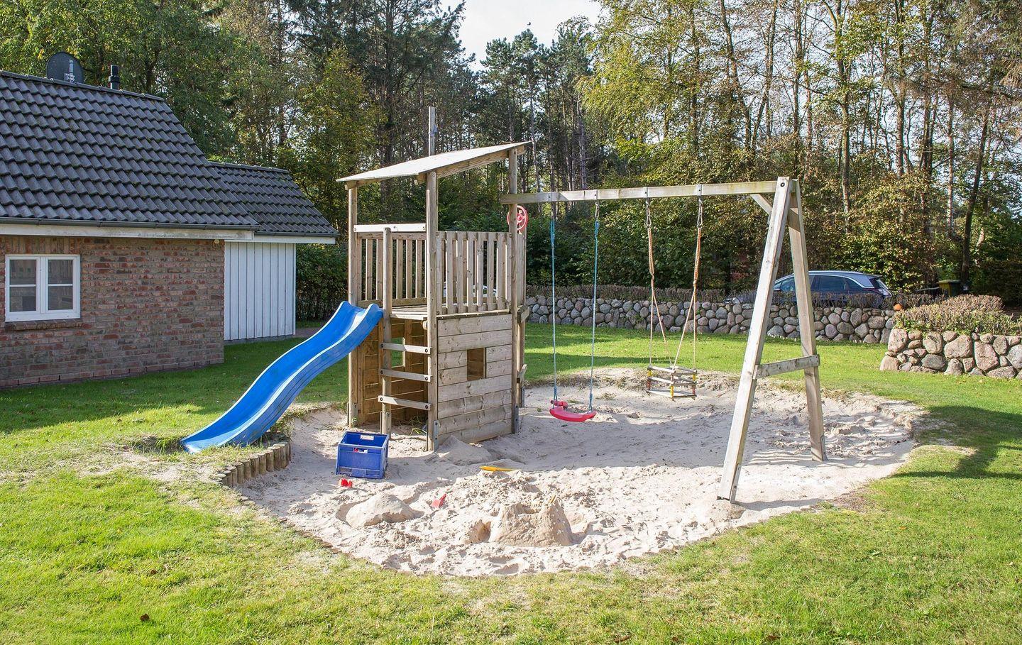 Für unsere kleinen Gäste gibt es einen Kinderspielplatz direkt am Haus, der nach Herzenslust genutzt werden darf.