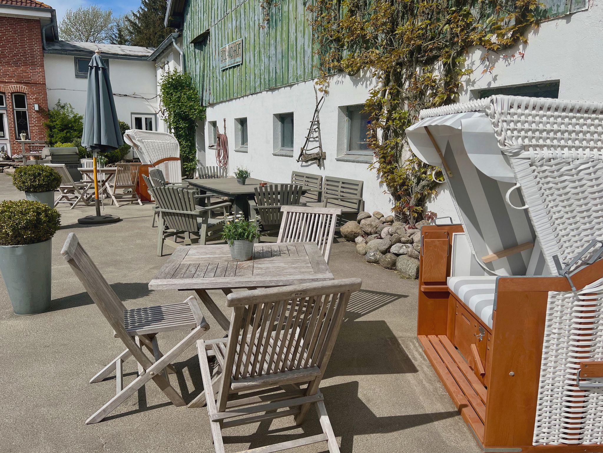 Verschiedene gemütliche Sitzplätze als auch Strandkörbe bieten euch auf dem Hofgelände die Möglichkeit zum Entspannen. Unser Schwimmteich lädt mit seinem Strandabschnitt ebenfalls zum Verweilen ein.