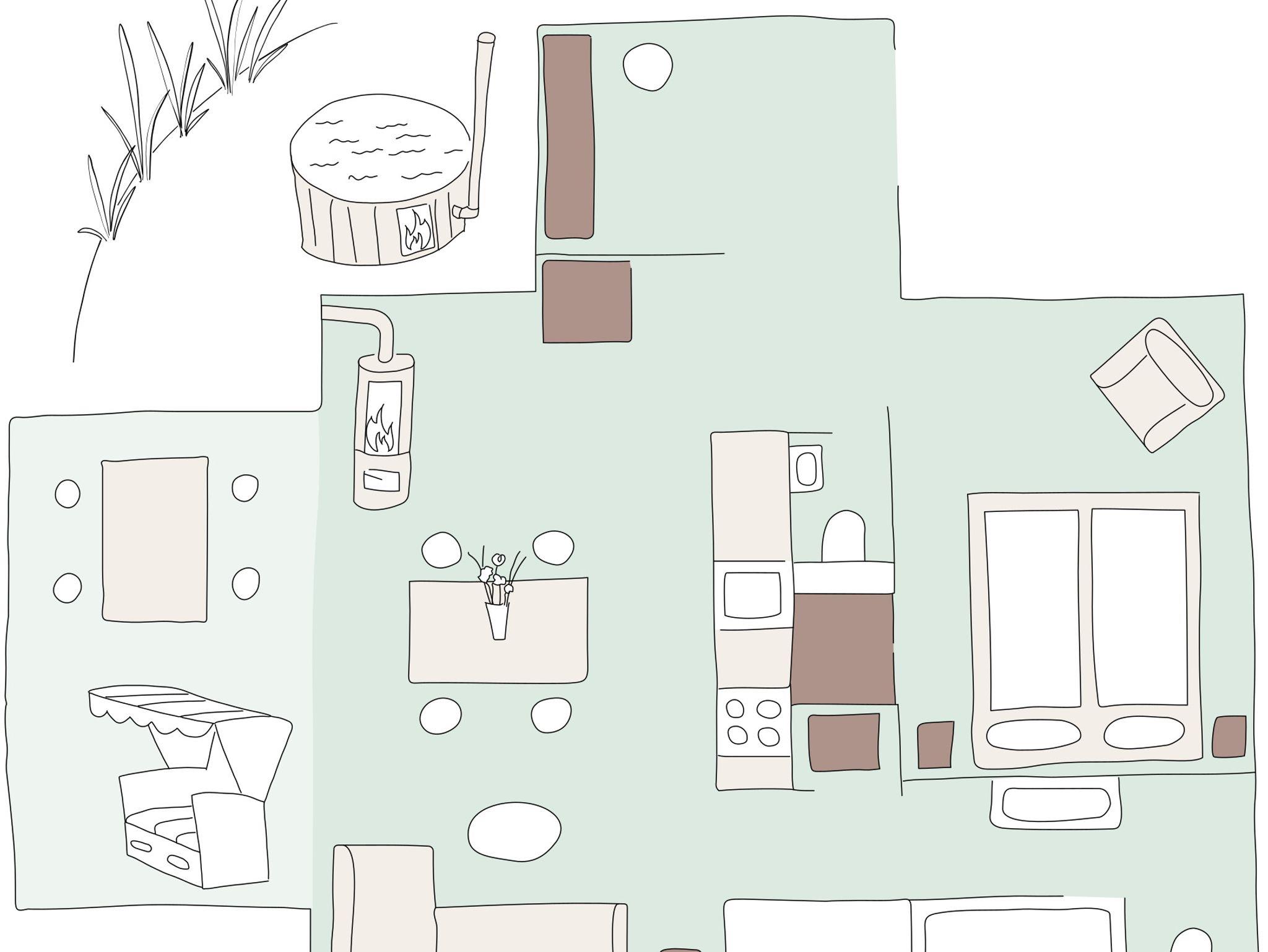 Die Wohneinheit hat einen Hot Tub, den ihr selber mit Holz beheizen könnt. Die Sauna ist kostenfrei auf dem Hof nutzbar.