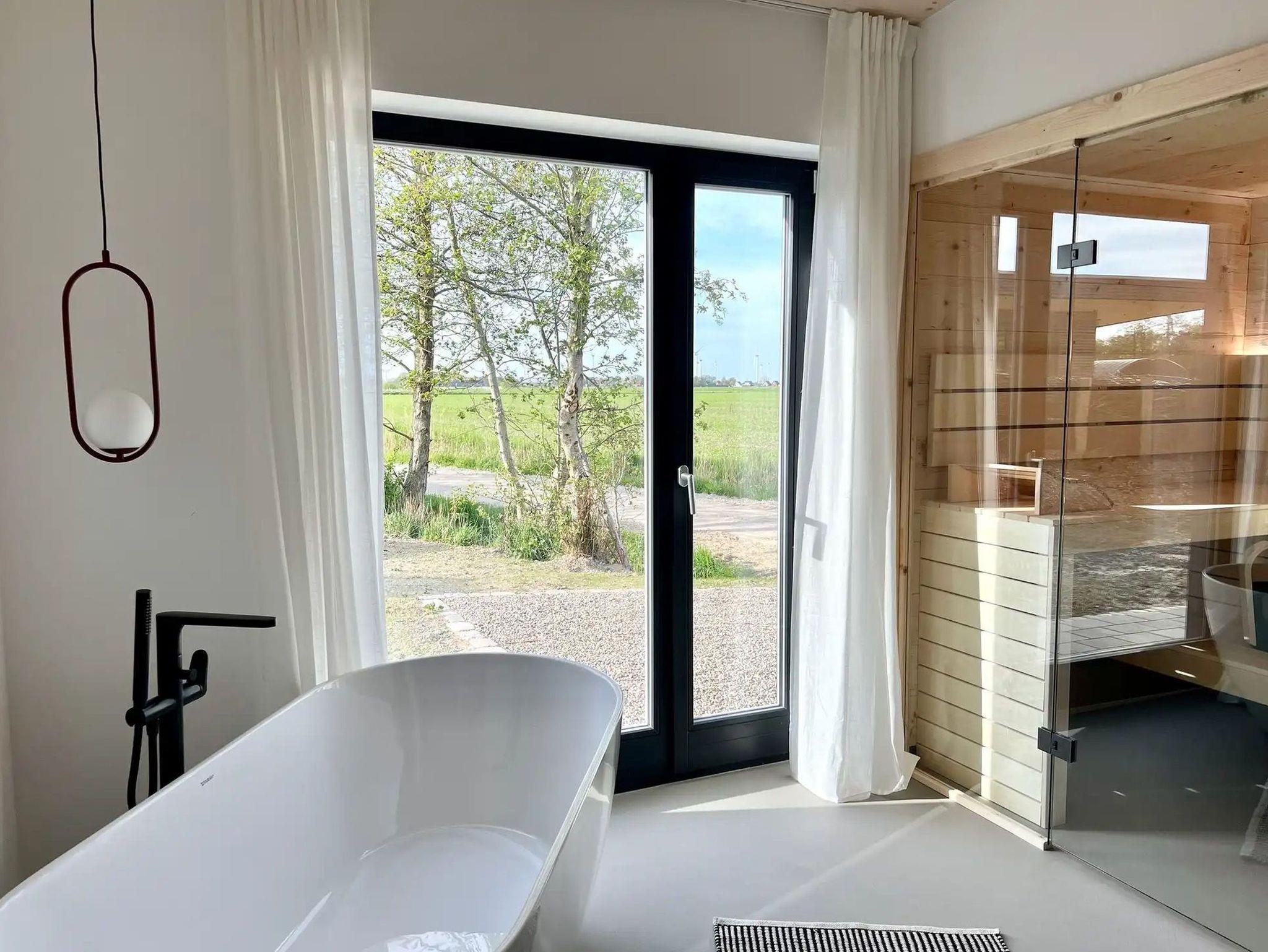 Moderne Architektur und Design trifft Natur Dieses exklusive Designhaus liegt nur etwa 50 Meter vom Hof entfernt und wird Ostern 2025 fertiggestellt. Auf 100 m² Wohnfläche bietet dieses Designhaus jeden Komfort und der farbenfrohe Einrichtungsstil sorgt mit seinen lebendigen Farben und kreativen Kombinationen für eine fröhliche und einladende Atmosphäre. Zwei Schlafzimmer bieten Platz für 4-5 Personen, ein perfekter Ort für Familien und Freunde. Große Fenster in allen Räumen eröffnen einen weiten Blick in die idyllische Umgebung, während überdachte Terrassen Schutz vor Sonne und Regen bieten und zum Verweilen einladen. Das Herzstück ist der großzügige Wohn- und Essbereich mit Kamin sowie eine voll ausgestattete Küche inklusive Weinkühlschrank. Ein luxuriöses Wellnessbad mit freistehender Badewanne, Panoramablick und Sauna sorgt für die pure Erholung. Der Außenbereich mit Hot Tub und Außendusche macht das Urlaubserlebnis perfekt. Dieser Rückzugsort lädt dazu ein, die Ruhe, Weite und unberührte Natur zu genießen. Der perfekte Ort, die Seele baumeln zu lassen. Architektur zum Wohlfühlen!