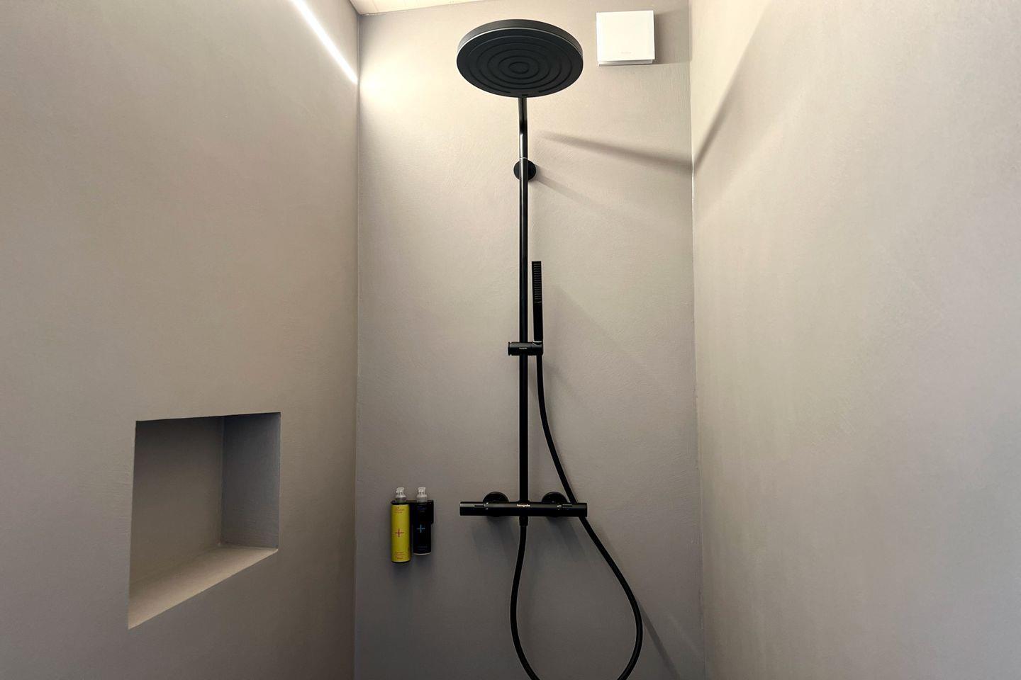 ° Badezimmer mit Regendusche, Badewanne, WC, Waschtisch, Föhn und Kosmetikspiegel
