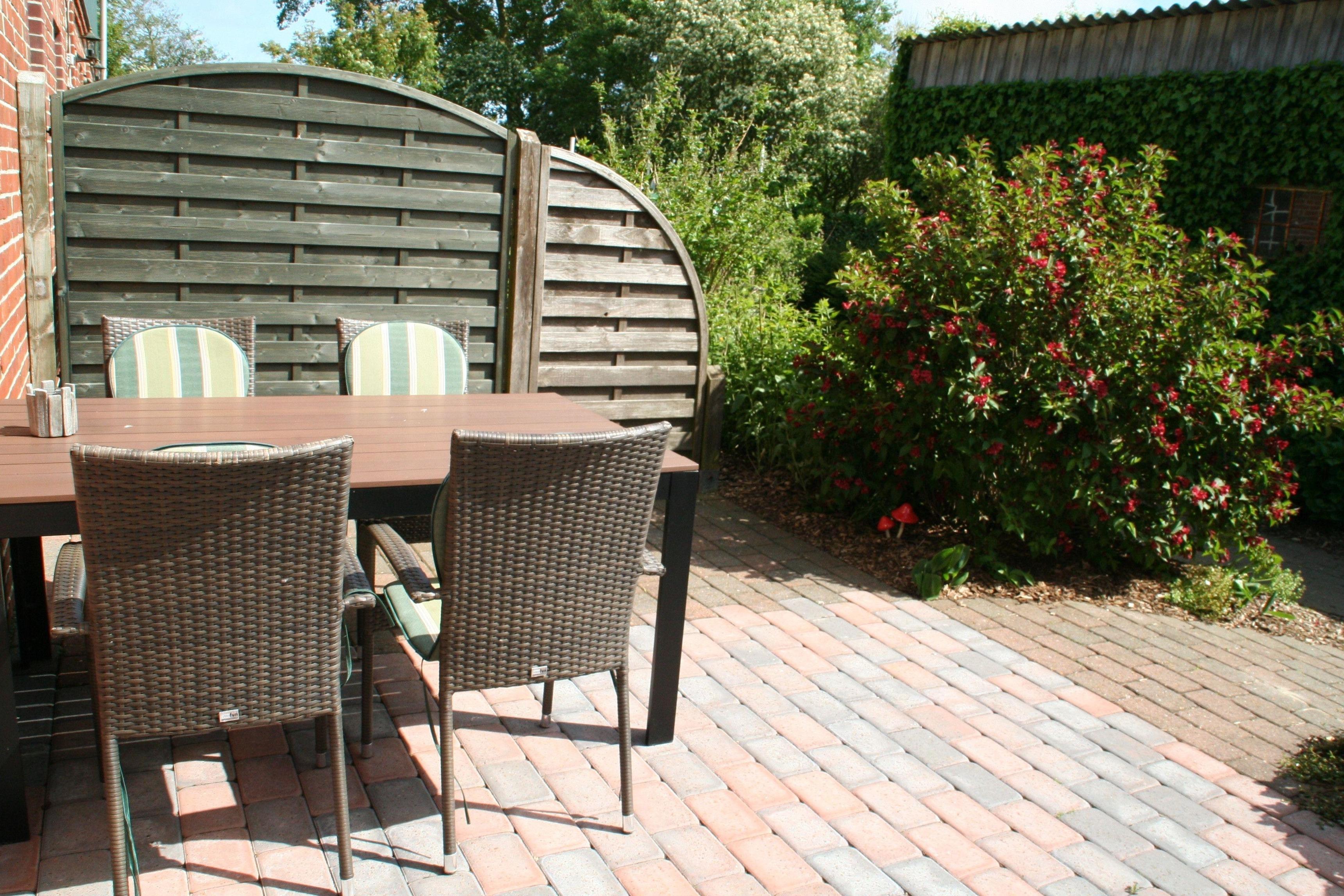 Im großen Garten finden Sie mehrere geschützte Sitzplätze mit Gartenmöbeln und Strandkörben.