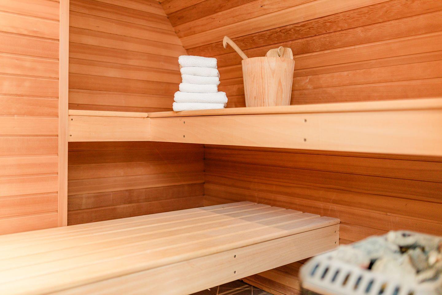 Zu den Highlights der Ferienunterkunft zählen wir u. a. die hochwertige Küche, die hauseigene Sauna und den Garten mit Terrasse.