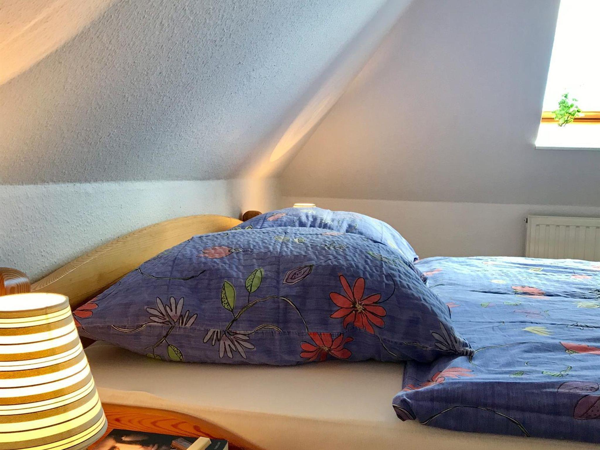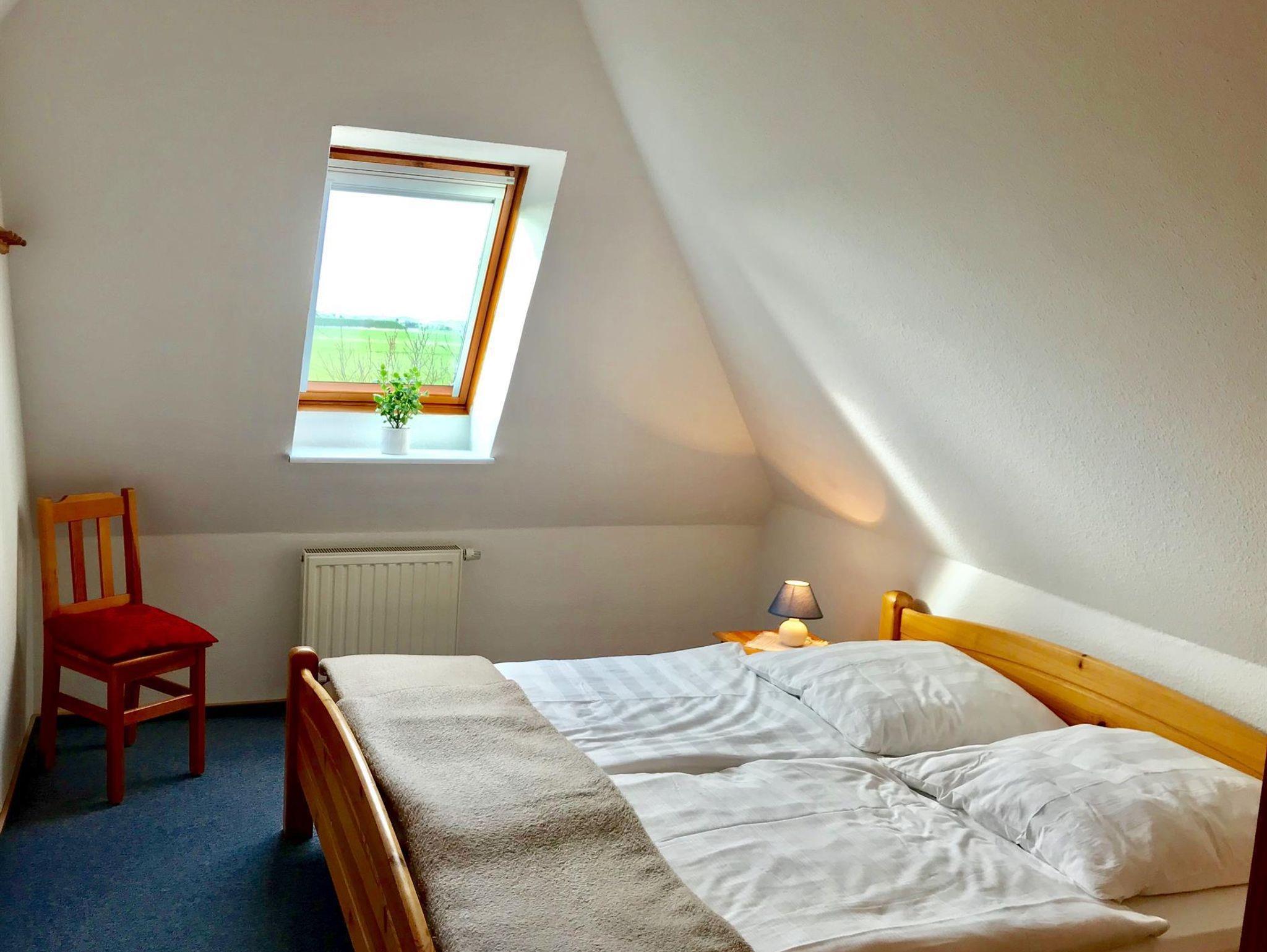 Die Ferienwohnung bietet 3 Schlafzimmer auf 80 qm, ein Duschbad, ein zweites Gäste WC und ein großzügigen Wohn-, Koch- und Essbereich. Kinderbetten oder Zustellbetten lassen sich zusätzlich unterbringen. Des Weiteren verfügt die Wohnung über eine Dachterrasse mit Weitblick über die Felder. Die Küchenzeile ist komplett ausgestattet (Kühlschrank,Herd, Microwelle, Geschirrspühler, etc.). Sat-TV ist vorhanden.Waschmaschine und Wäschetrockner stehen bei Bedarf zur Verfügung.