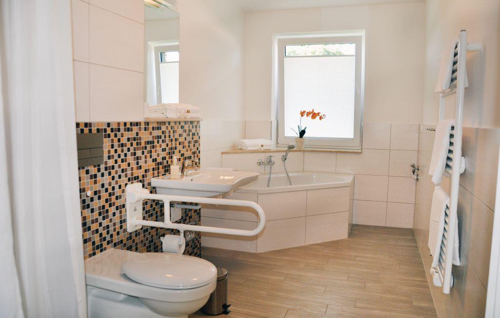 Badeværelse (nr. 1) - WC. Varmt og koldt vand. Bruser og badekar