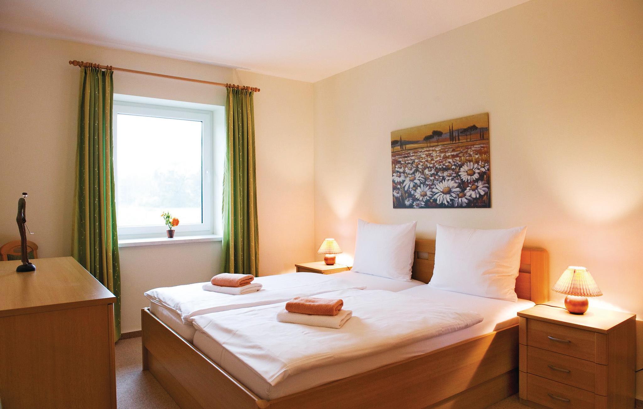 Denne hyggeligt indrettede moderne ferielejlighed ligger i et hus direkte ved Golfpark Strelasund. I kan selvfølgeligt gøre brug af golfparkens tilbud mod gebyr som golfkurser, brug af svømmehallen og wellness, sauna og massage. I golfhotellets restaurant kan I lade jer forkæle på den flotte terrasse. Alt efter jeres ønsker kan I bestille flere ydelser fra hotellet f.eks. morgenmad, så I ikke behøves undvære den mindste komfort. Lad jer endelig vejlede.