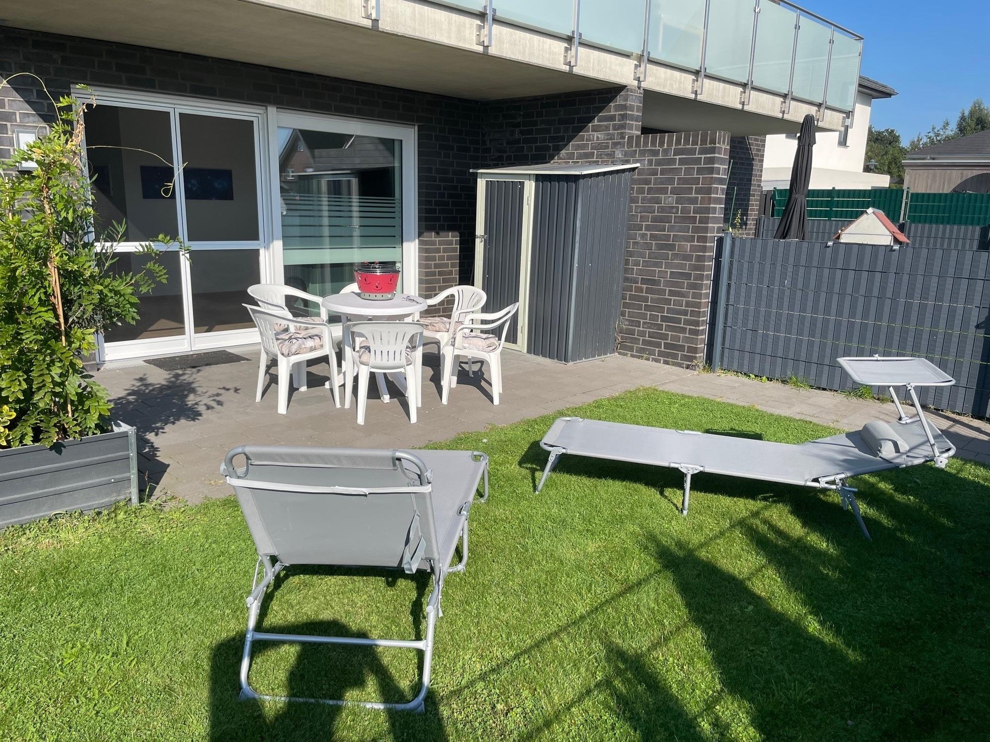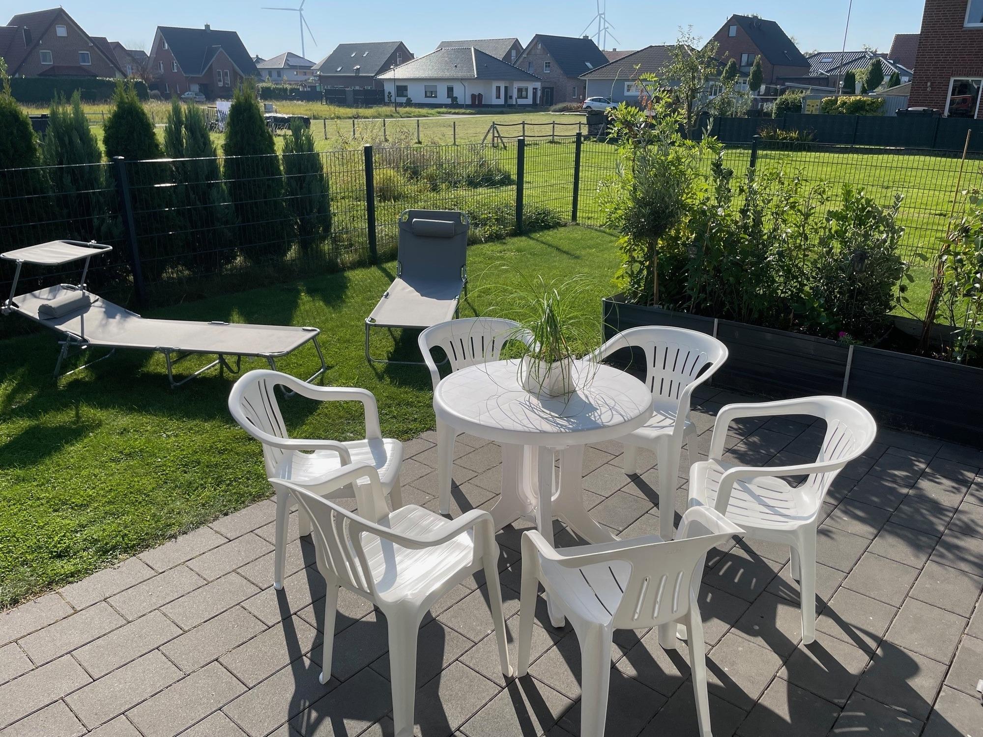 Terrasse: 2 Gartenliegen, welche als Zustellliege für eine 6- und 7-te Person genutzt werden kann (mit vermindertem Schlafkomfort allerdings).