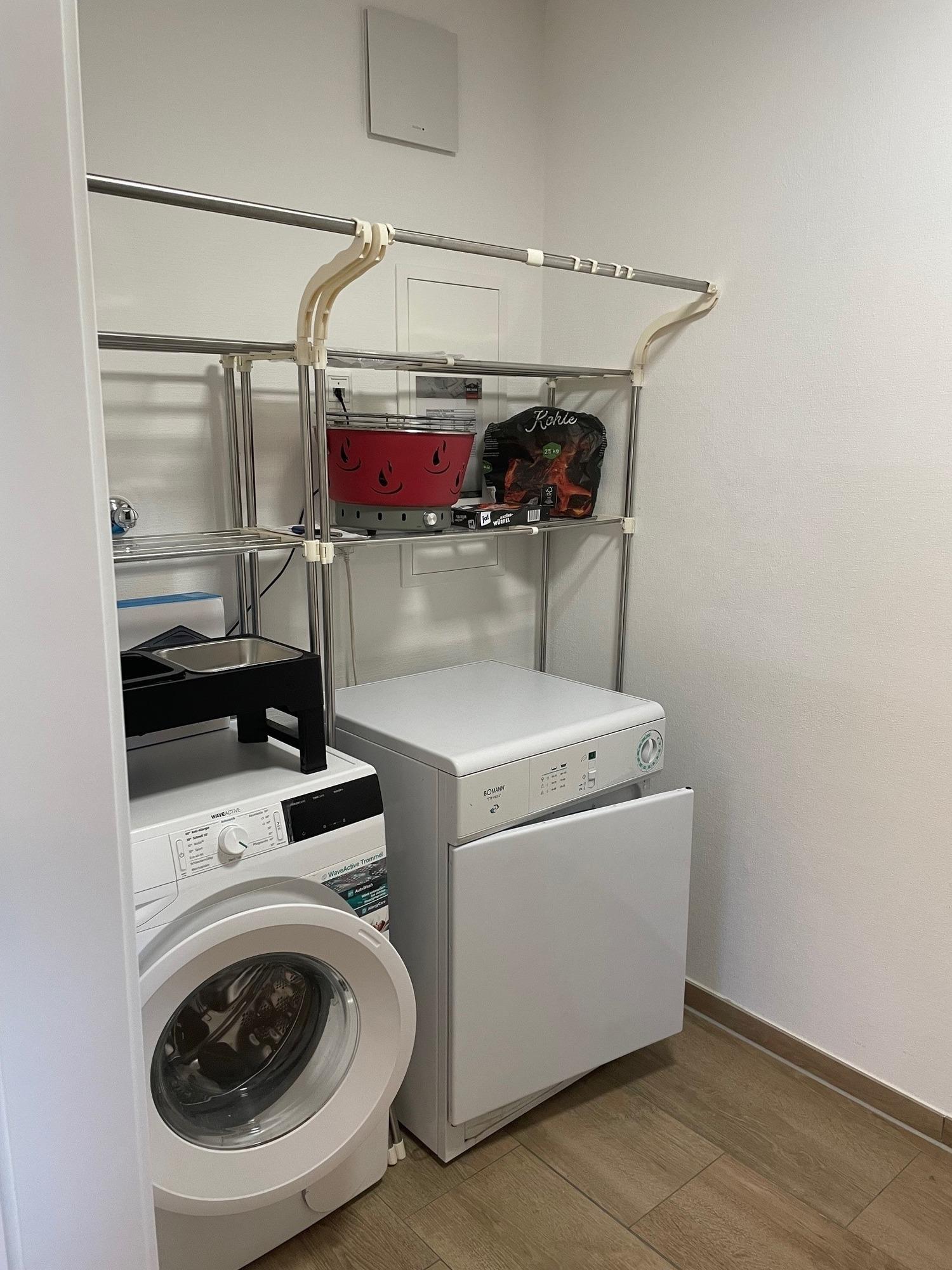 Abstellraum: Waschmaschine & Trockner mit Schrank & Decken & Kopfkissen, optional auch für für Bettwäsche