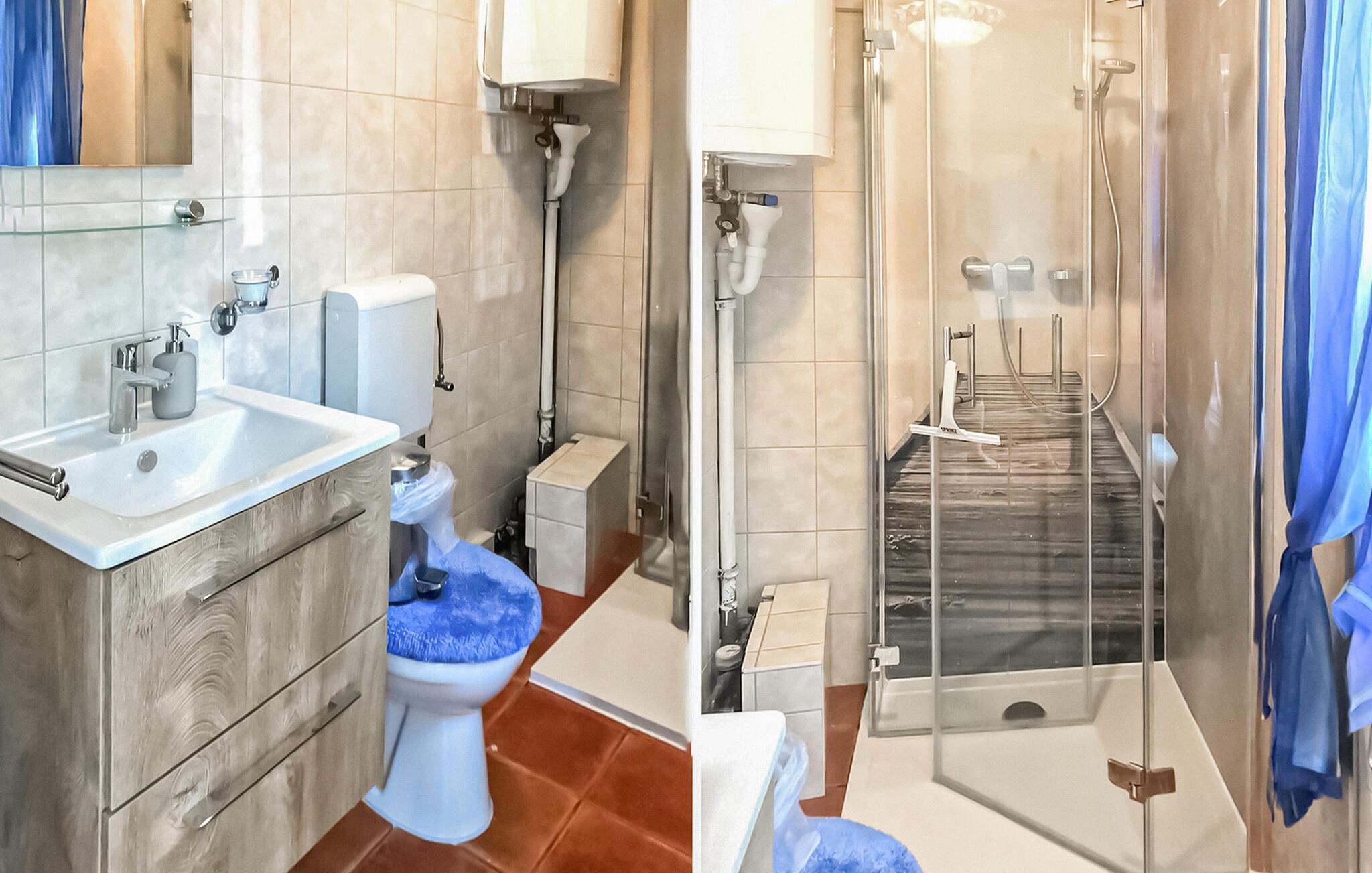 Badeværelse (nr. 1) - WC. Varmt og koldt vand. Bruser