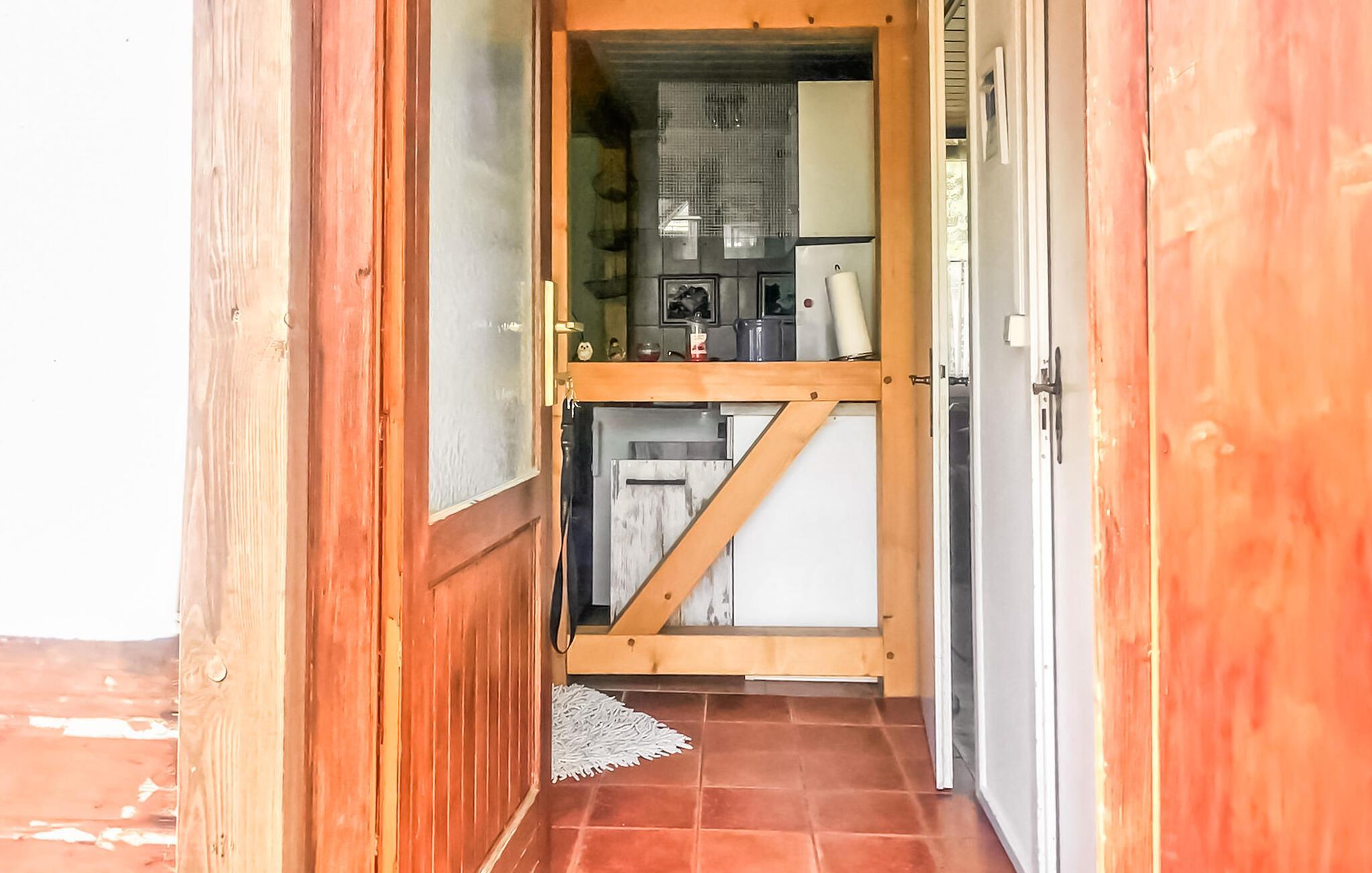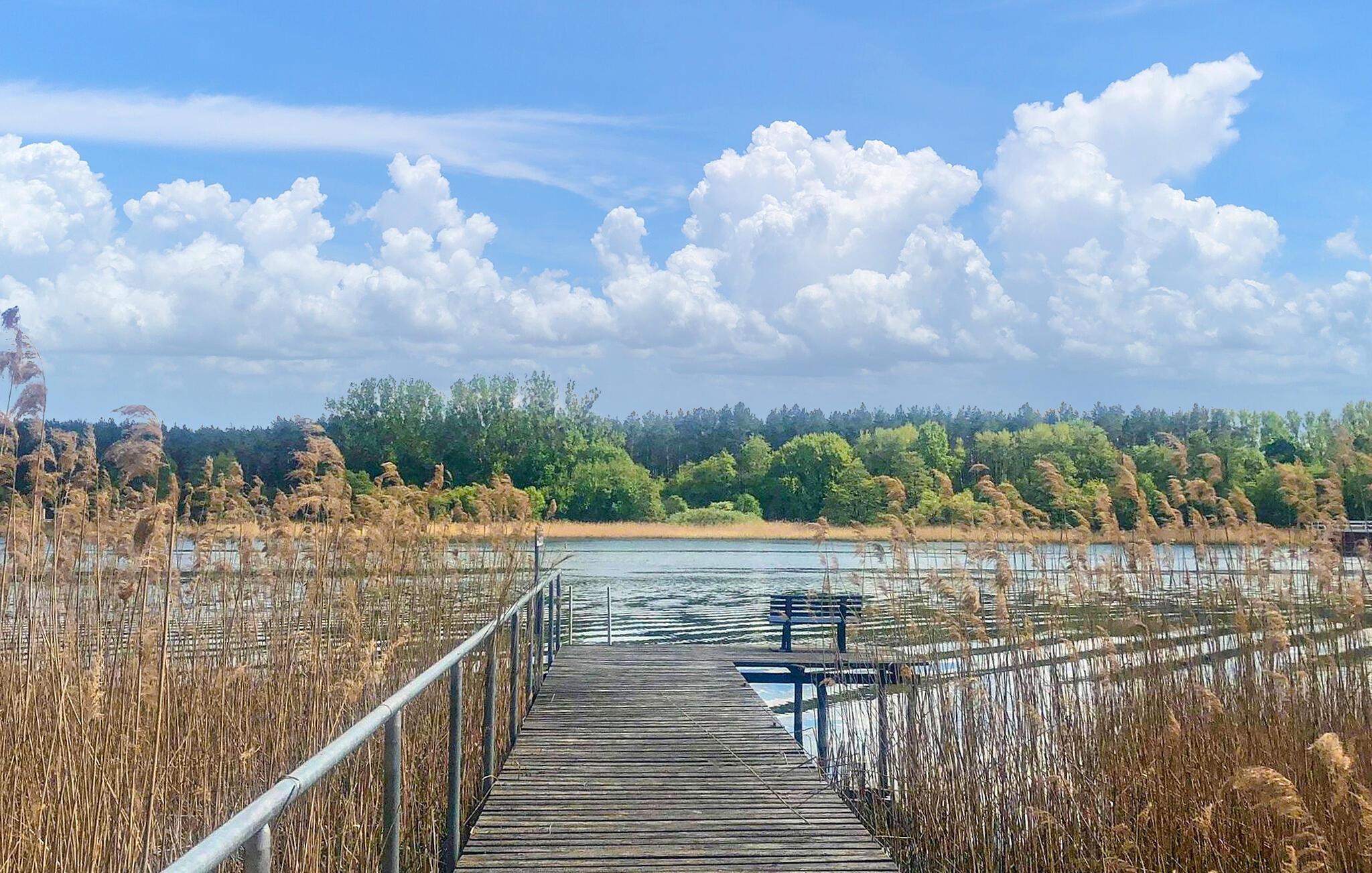 Kun få skridt fra Müritzarm, forbindelsen mellem Kleine Müritz og Müritzsee, ligger den hyggelige bungalow for op til 4 personer på en fælles naturgrund i skoven - den ideelle adresse for alle naturelskende gæster, der søger aktiv afslapning. Til det lille kompleks (i alt 4 feriehuse) hører en privat fælles anløbsbro, og en skøn offentlig badeplads med græsplæne til solbadning kan nås efter knap 200 m. Den ikke-ryger bungalow, som er på ca. 30 kvm. blev sidst renoveret i 2020, er udstyret med insektbeskyttelse på soveværelsesvinduet og har en stue (sovesofa, fladskærms-tv, radio, spisebord) med åbent tekøkken (keramisk kogeplade, køleskab med fryser, mikroovn, kaffemaskine , elkedel, brødrister), et soveværelse (dobbeltseng 1,60 m) og et renoveret badeværelse med bruser/toilet. Der er også overdækket, møbleret terrasse, udesauna, grill (anvendes afhængigt af gældende skovbrandadvarselsniveau!), fælles gangbro og parkeringsplads Slutrengøring er inkluderet i totalprisen. Medbring venligst håndklæder. Betales på stedet: el og vand efter forbrug. En hund er tilladt i denne ejendom.