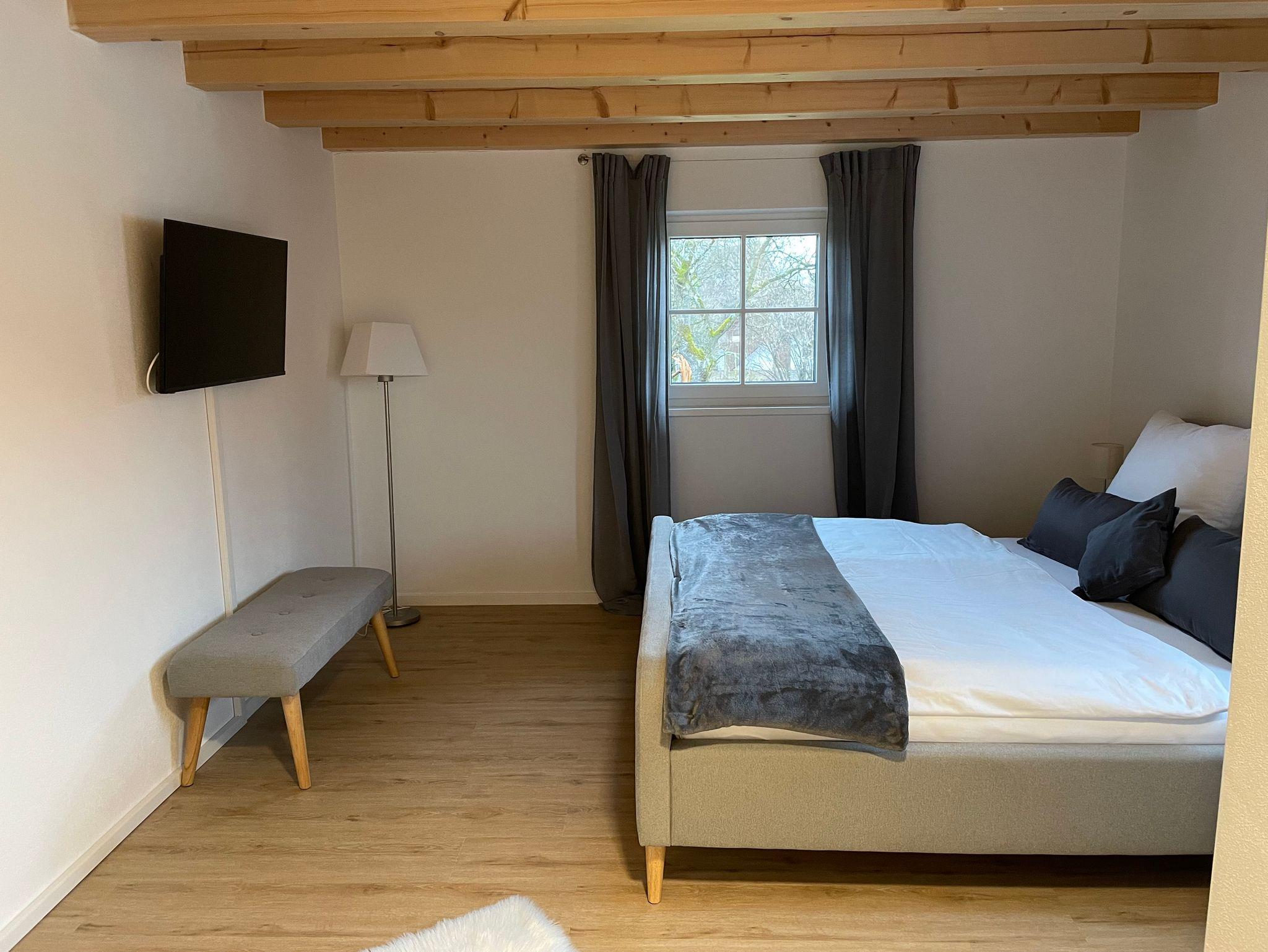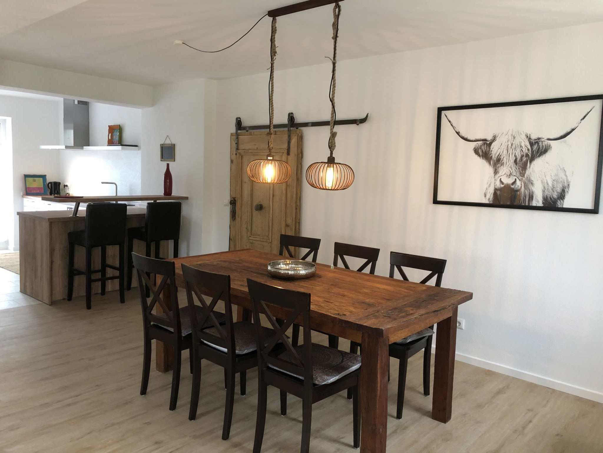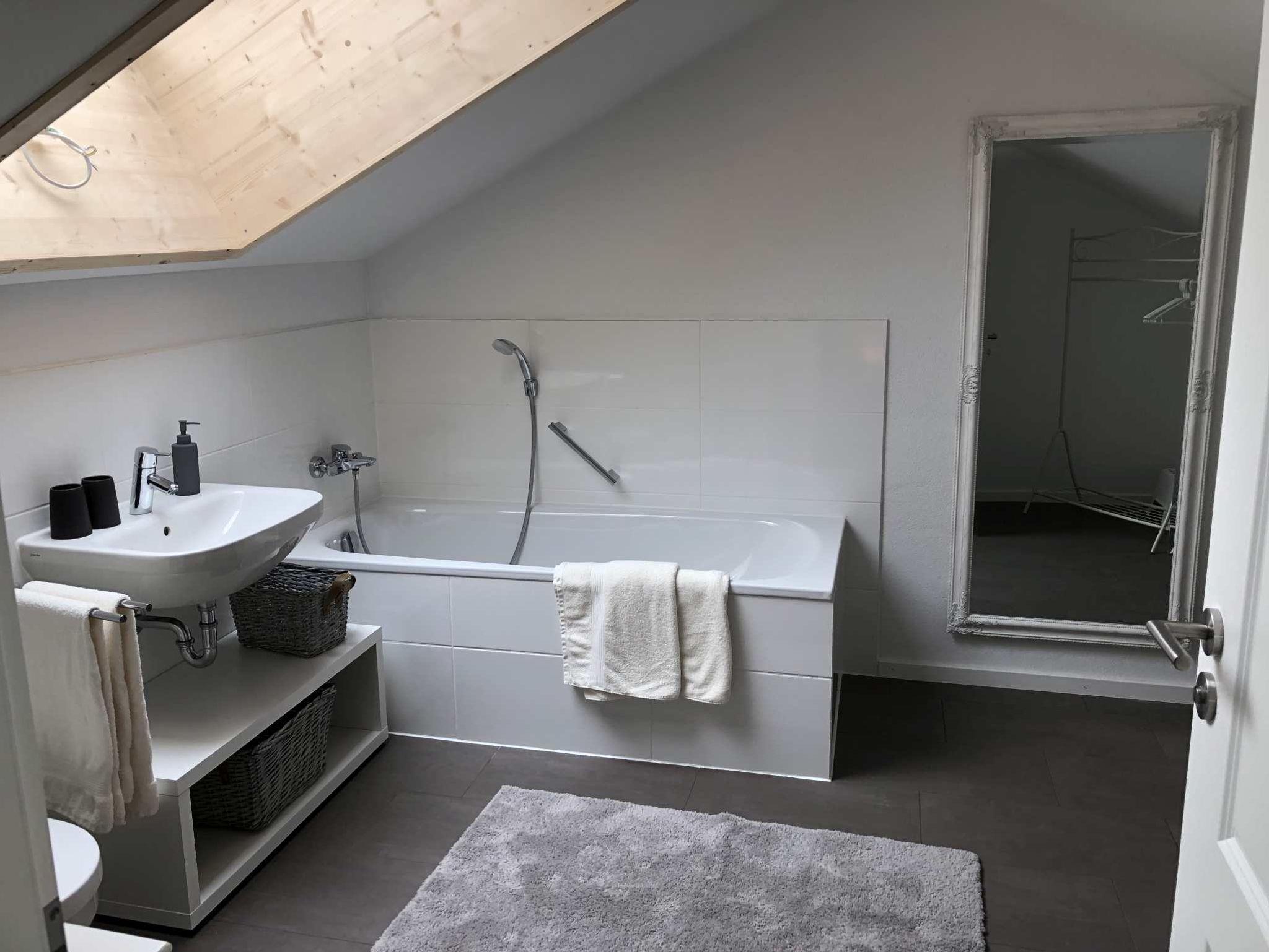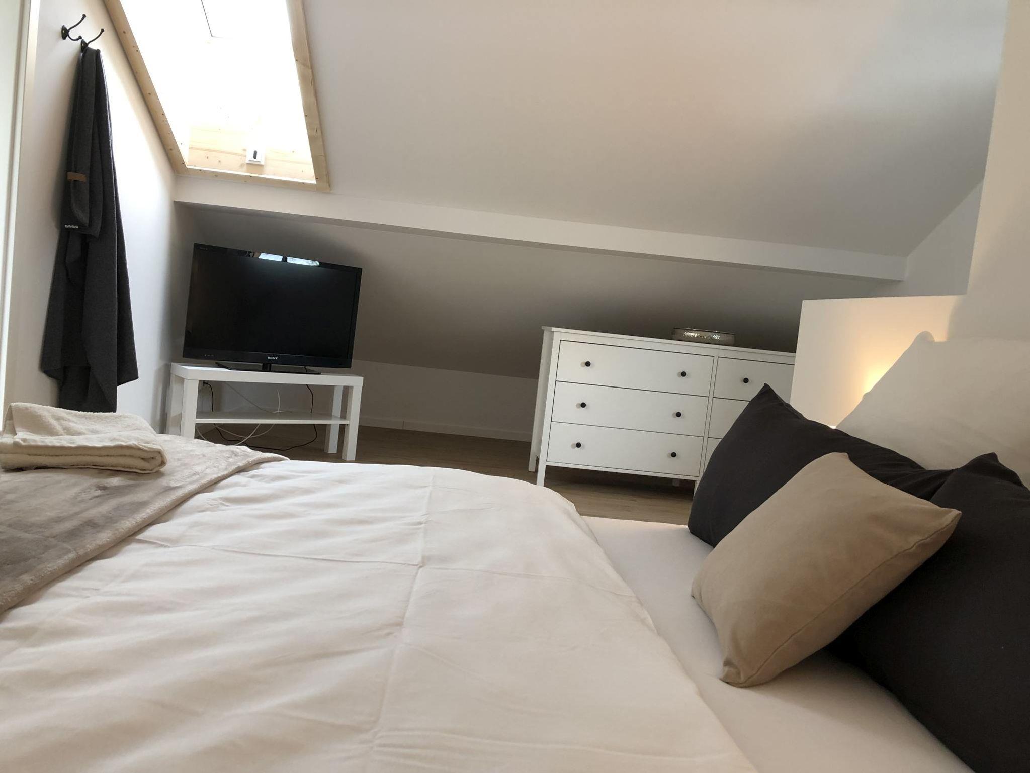 Buchung bis zu 8 Personen möglich.Das Schlafzimmer im DG mit Flat-TV verfügt über ein Badezimmer en Suite mit Badewanne und wird nur ab 5 Personen nd 10 EUR pro Tag. Andere Haustiere auf Anfrage.Im Preis ist enthalten: Handtücher, Bettwäsche, Steuern und Abgaben.Endreinigung extra: 60 EUR