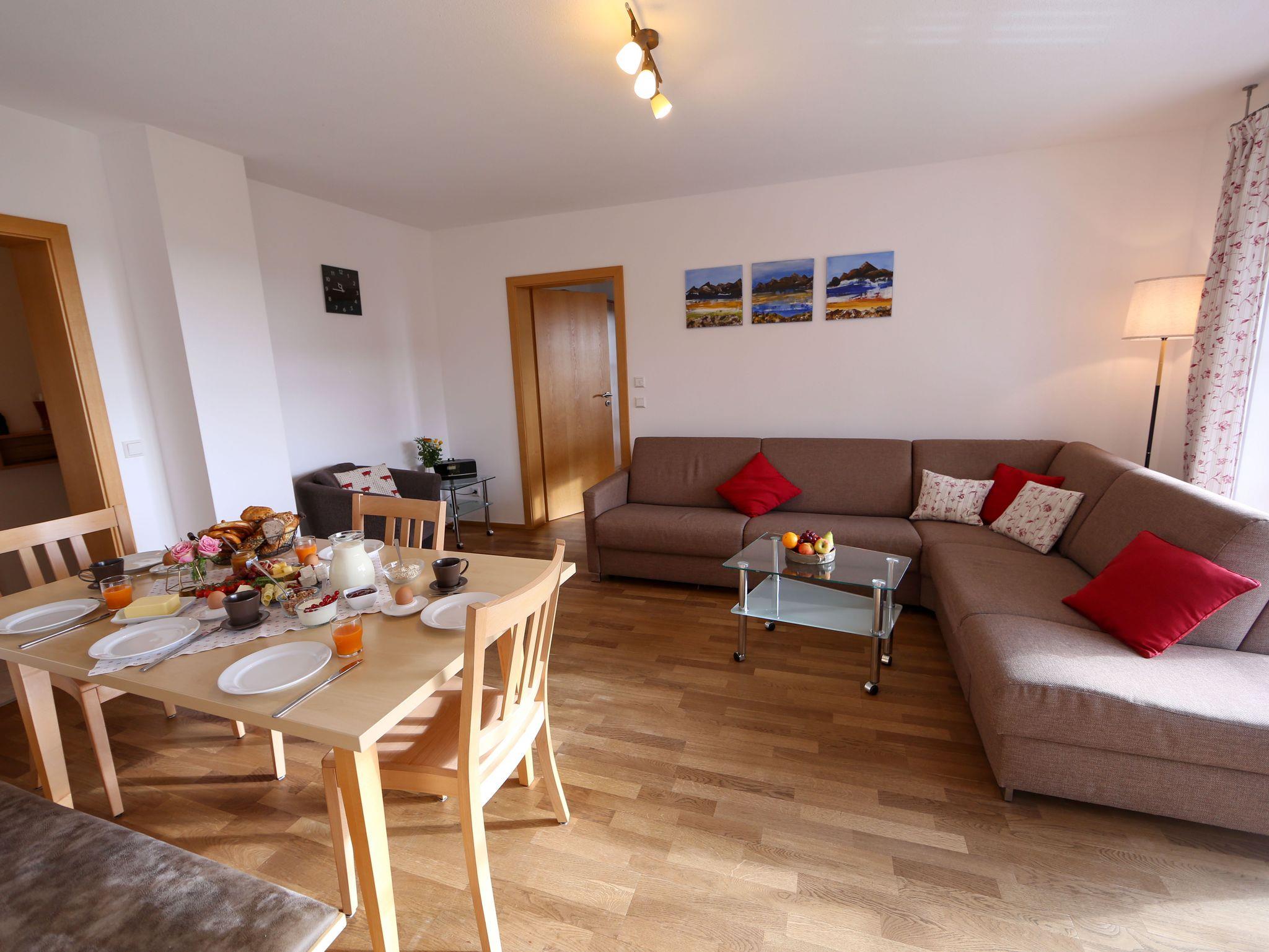 Die Ferienwohnung Untersberg***** (4 - 6 Personen) hat eine Wohnfläche von 86 qm und verfügt zusätzlich über einen Balkon von 17 qm. Die exklusiv ausgestattete Ferienwohnung hat zwei Schlafzimmer, zwei Bäder sowie ein großes Wohnzimmer (inkl. Ausziehcouch) und eine separate Küche. Kinderbetten werden auf Anfrage bereitgestellt.