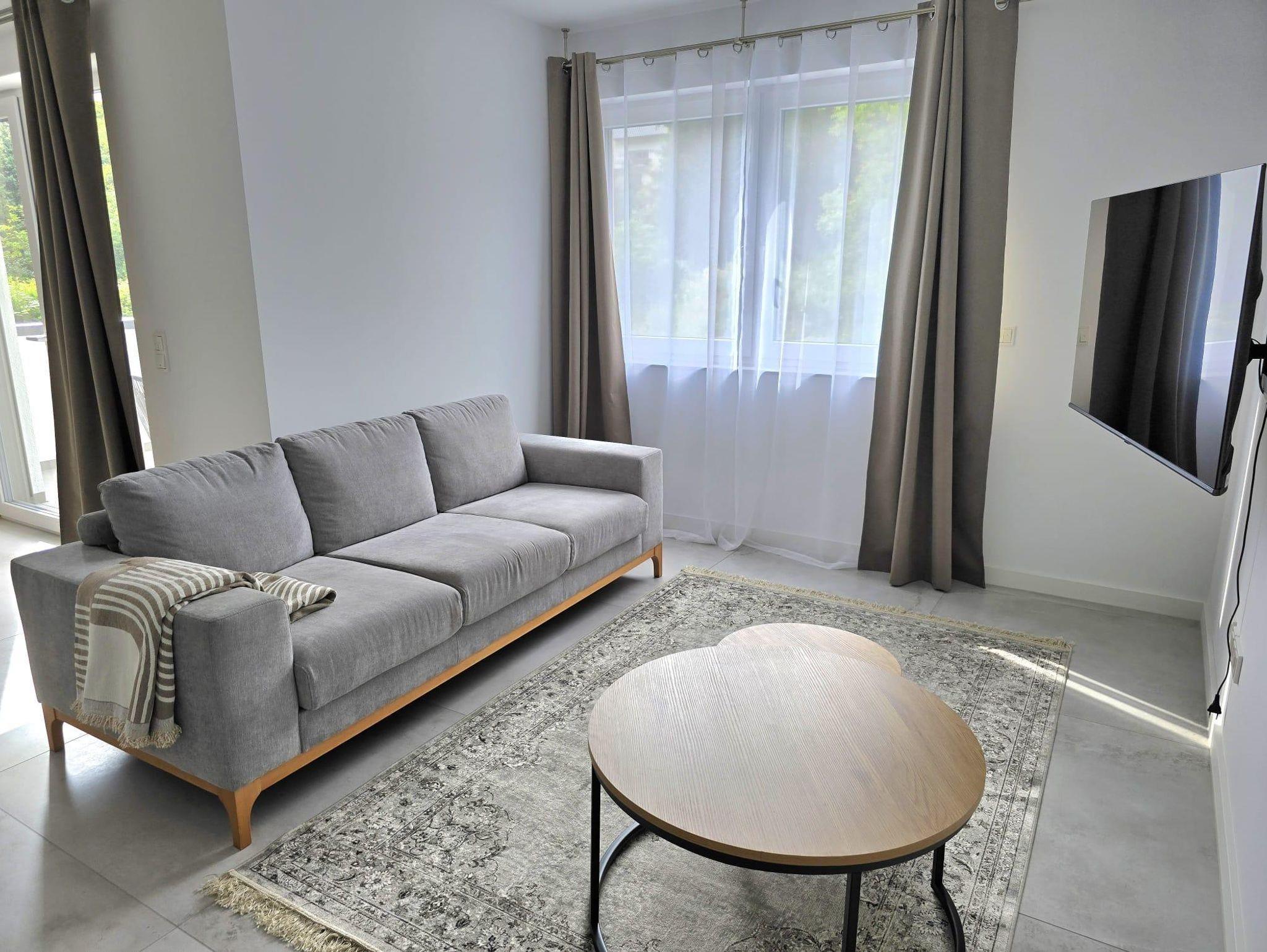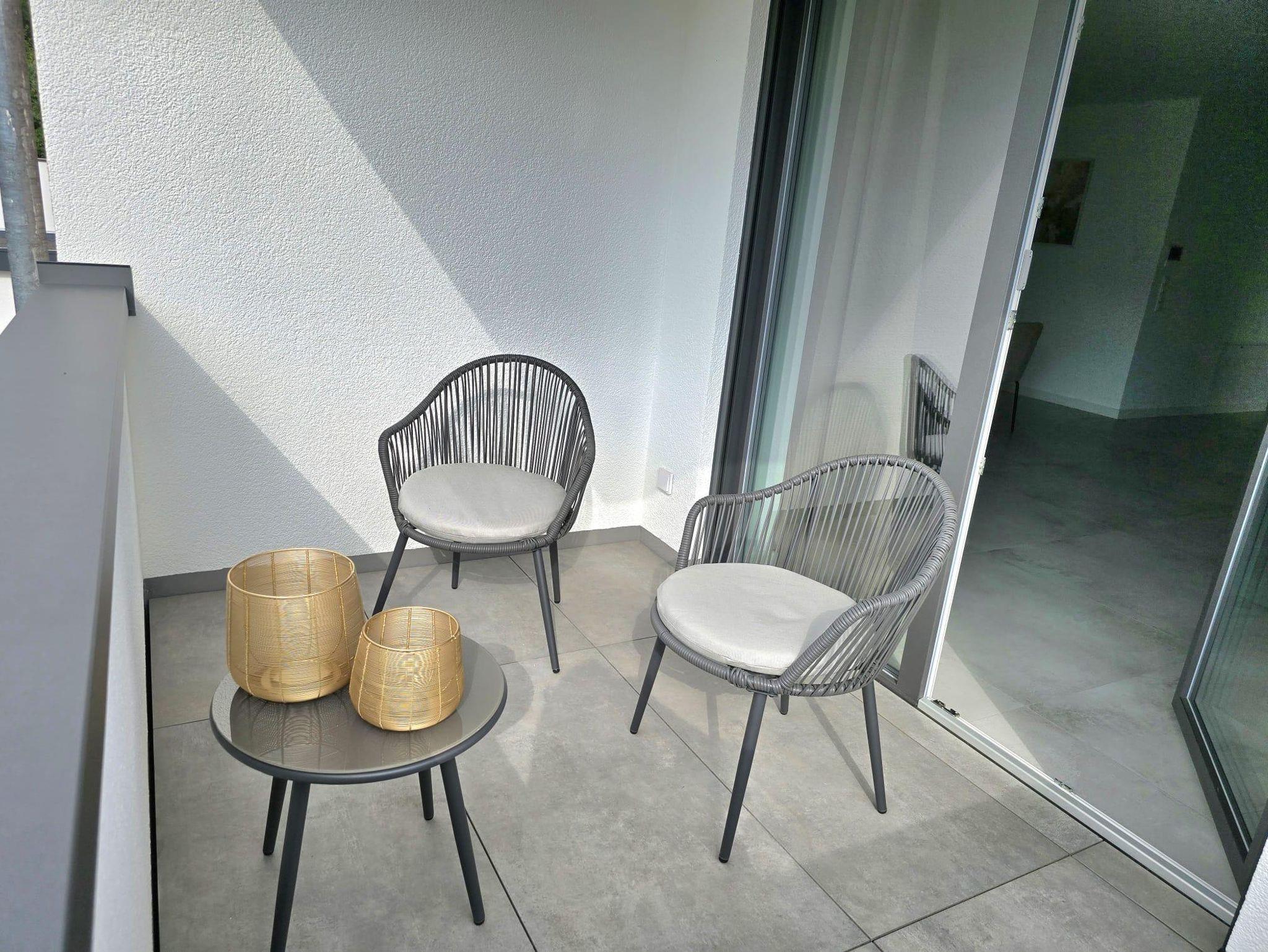 Mit einer Wohnfläche von ca. 90 qm laden wir Sie herzlich in unsere neu gebaute und modern eingerichtete 5-Sterne-Ferienwohnung ein. Der offene Wohnraum umfasst ein großzügiges Wohn- und Esszimmer und eine offene, gut ausgestattete Küche. Hier stehen Ihnen Backofen, Ceramic Herdplatte, Mikrowelle, Kühlschrank mit Gefrierfach, Geschirrspülmaschine, Kaffeemaschine sowie Wasserkocher zur Verfügung. Vom Wohn- und Essbereich haben Sie direkten Zugang zum überdachten Balkon mit Sitzgarnitur, auf dem Sie den Abend bei einem Glas Wein ausklingen lassen können. Darüber hinaus gibt es zwei separate Schlafzimmer mit Doppelbetten (1,80m x 2,00m Liegefläche) sowie einen Abstellraum mit ausreichend Stauraum. Es besteht außerdem die Möglichkeit, zwei weitere Schlafplätze für Kinder bis 12 Jahre im Wohnzimmer einzurichten, womit die Wohnung Platz für 4 Erwachsene und 2 Kindern bietet. Zusätzlich steht ein Schlafsessel als Zustellbett für die 5. Person zur Verfügung. Es gibt ein geräumiges Tageslichtbad mit ebenerdiger Dusche (1,00m Breite, 1,50m Länge), WC, Waschbecken, Kosmetikspiegel und Föhn. Der gesamte Wohnraum ist mit modernen Fliesen sowie Fußbodenheizung ausgestattet.