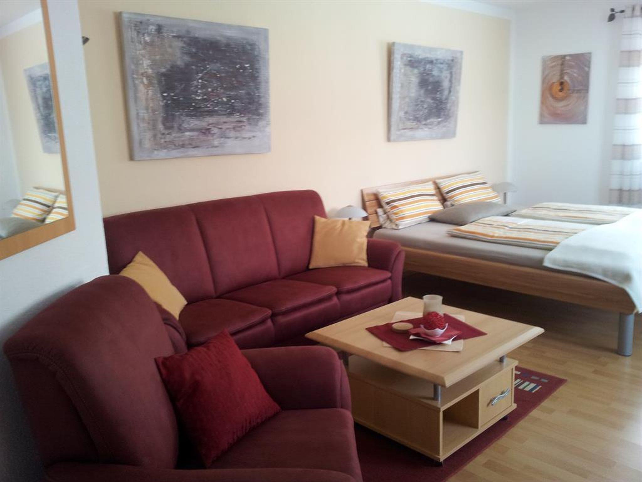 Willkommen in unserer 52 qm Ferienwohnung mit Blick in den Obstgarten! Wir freuen uns auf Ihren Besuch! Hier finden Sie alles, was Sie für einen erholsamen Aufenthalt benötigen: ein gemütlicher Wohn-Schlafraum mit Doppelbett, eine separate Wohnküche mit komplett eingerichteter Küchenzeile und Essecke, sowie ein Bad mit Dusche und WC. Außerdem stehen Ihnen Kabel-TV - Flachbildschirm, kostenloses WIFI/W-Lan, Radio mit CD-Player, Fußbodenheizung, elektrische Rollläden, eine Fahrradgarage und eine Grillmöglichkeit zur Verfügung. Genießen Sie die Sonne auf unserer Sonnenterrasse oder entspannen Sie auf unserer Liegewiese direkt vor dem Eingang.
