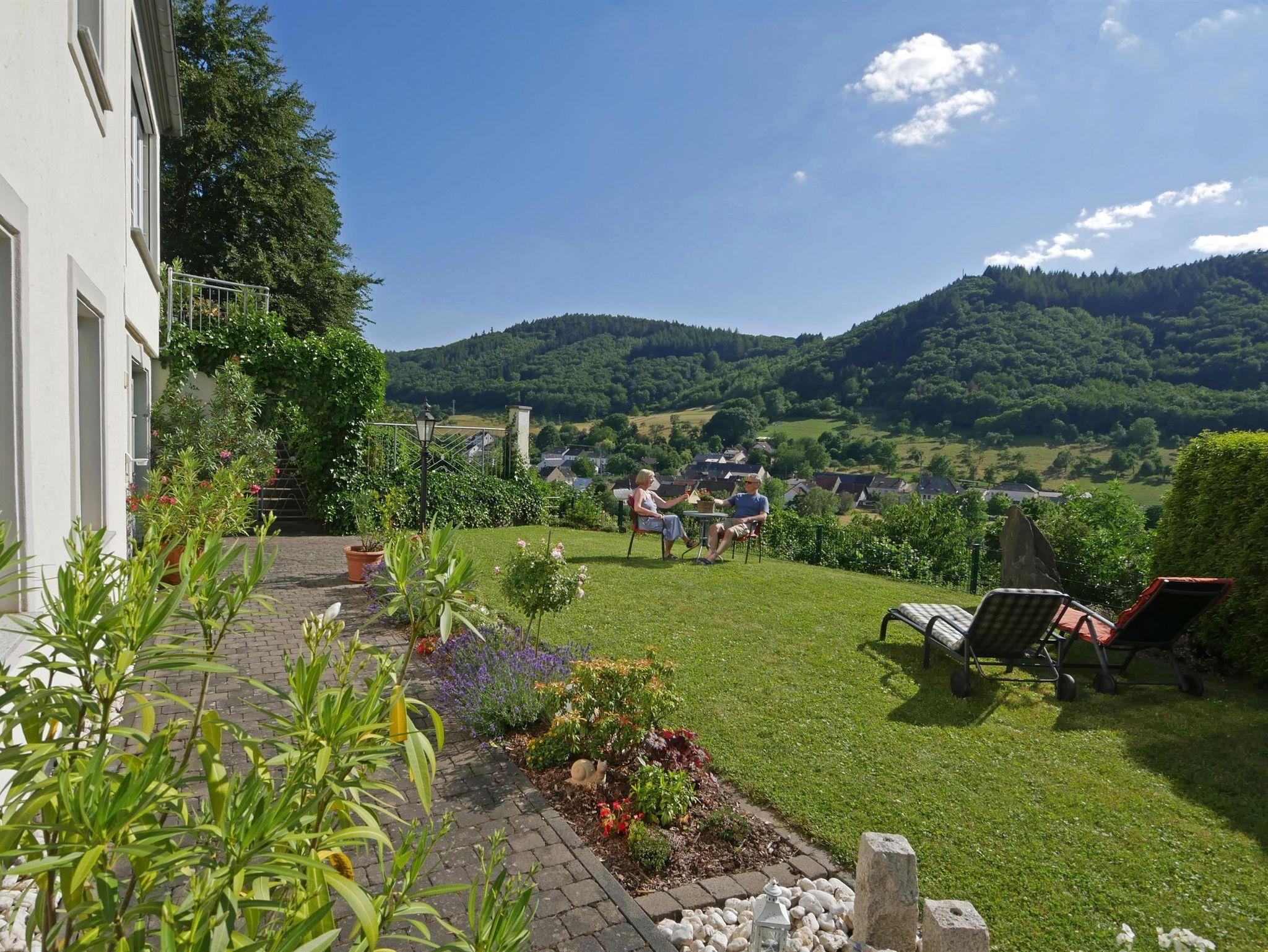Die Ferienwohnung im Erdgeschoss bietet mit 118 qm Wohnfläche reichlich Platz für 4 Personen. 2 Doppelschlafzimmer stehen zur Verfügung. Von der Terrasse mit Liegewiese geniessen Sie den Blick ins schöne Saartal und Saarburg.