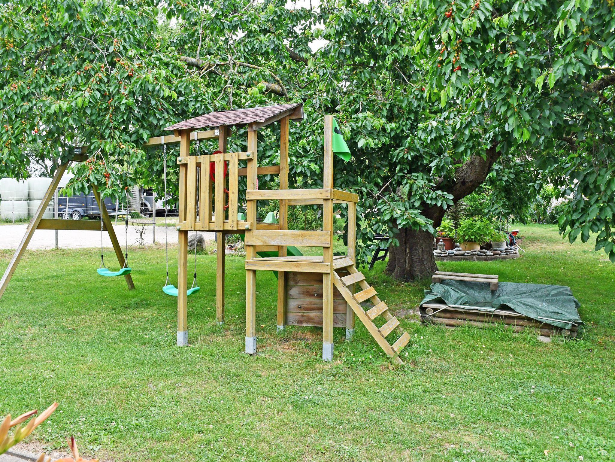 Im Garten können Gäste dieser Ferienwohnung eine schöne Sonnenterrasse mit Gartenmöbeln und Grillmöglichkeit nutzen.