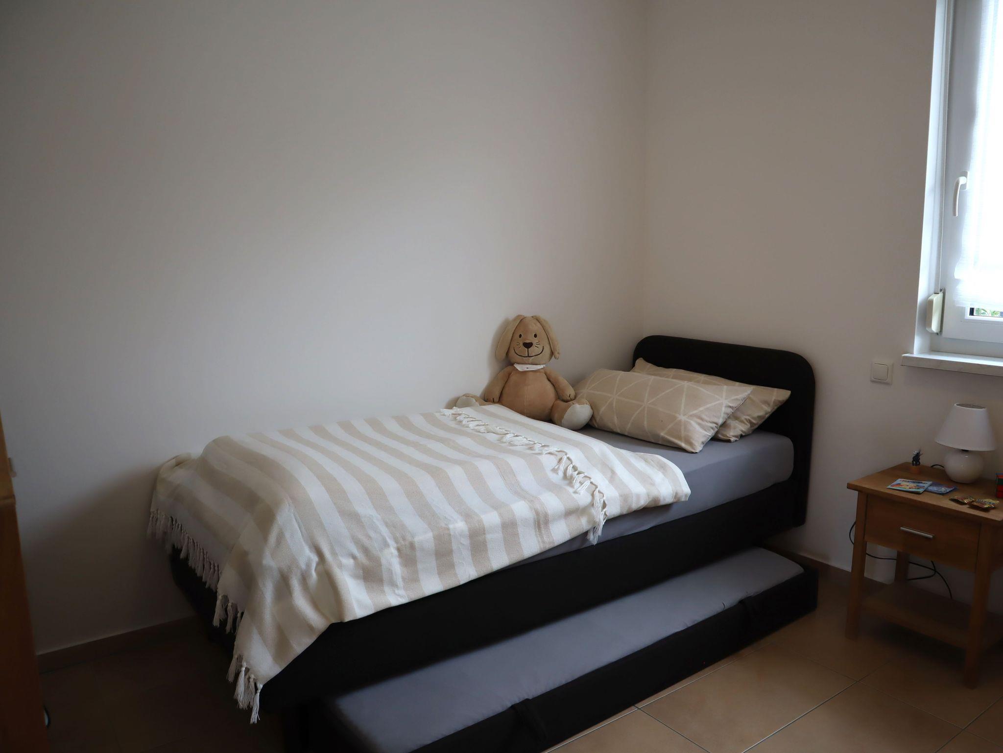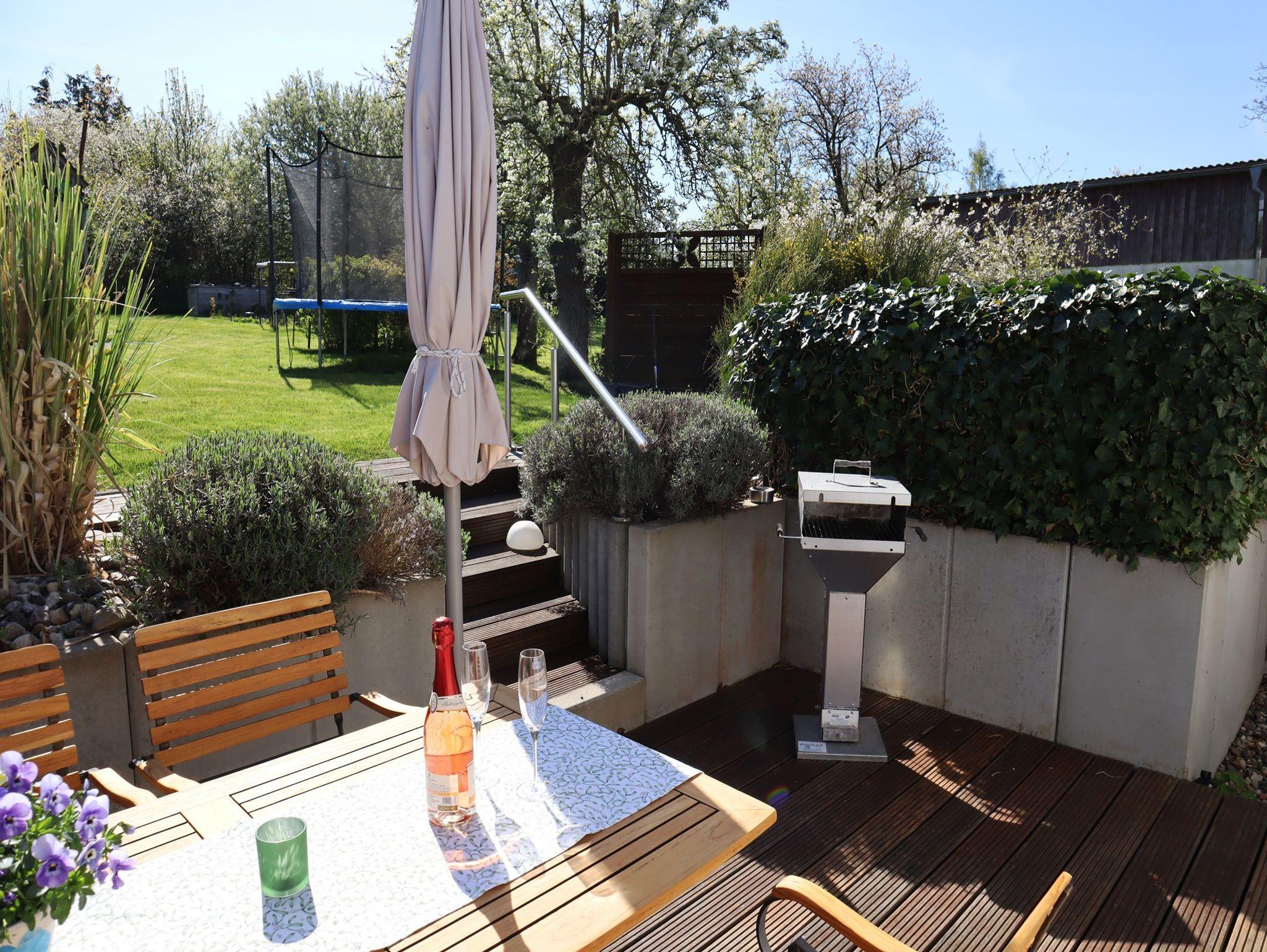 Das im Jahr 2013 neu erbaute altersgerechte Ferienhaus hat eine Größe von 53 m² und ist ausgestattet mit Fußbodenheizung, kontrollierter Be- und Entlüftungsanlage, es ist umweltbewusst durch Photovoltaik und Geothermie. An den Fenstern sind Außenjalousien. Die Einbauküche enthält neben dem Herd mit Backofen einen Geschirrspüler und eine Mikrowelle, eine Kaffeemaschine sowie einen Wasserkocher. Eine Tiefkühlmöglichkeit ist im Haus des Vermieters vorhanden. Im Ferienhaus befindet sich außer dem kombinierten Küchen-/Wohnbereich ein Schlafzimmer mit zwei Betten, die als Doppelbett oder auf Wunsch als zwei Einzelbetten genutzt werden können. Die Betten haben eine komfortable Höhe. Das zweite Schlafzimmer verfügt über ein Bett, welches bei Bedarf ausgezogen und als weitere Schlafgelegenheit verwendet werden kann( 0,80 x 1,70m). Falls erforderlich, wird für Babys und Kleinkinder ein Kinderreisebett zur Verfügung gestellt. Ein Kinderhochstuhl ist ebenfalls vorhanden. Der Wohnbereich umfasst eine Couch mit Tisch, einen Fernseher und DVD-Player, weiterhin befindet sich hier der Esstisch mit vier Stühlen. Das Bad ist ausgestattet mit Dusche, Waschmaschine, Fön und verfügt über ein Fenster. Bettwäsche und Handtücher sind inklusive. Auf Wunsch kann die Mehrwertsteuer ausgewiesen werden.