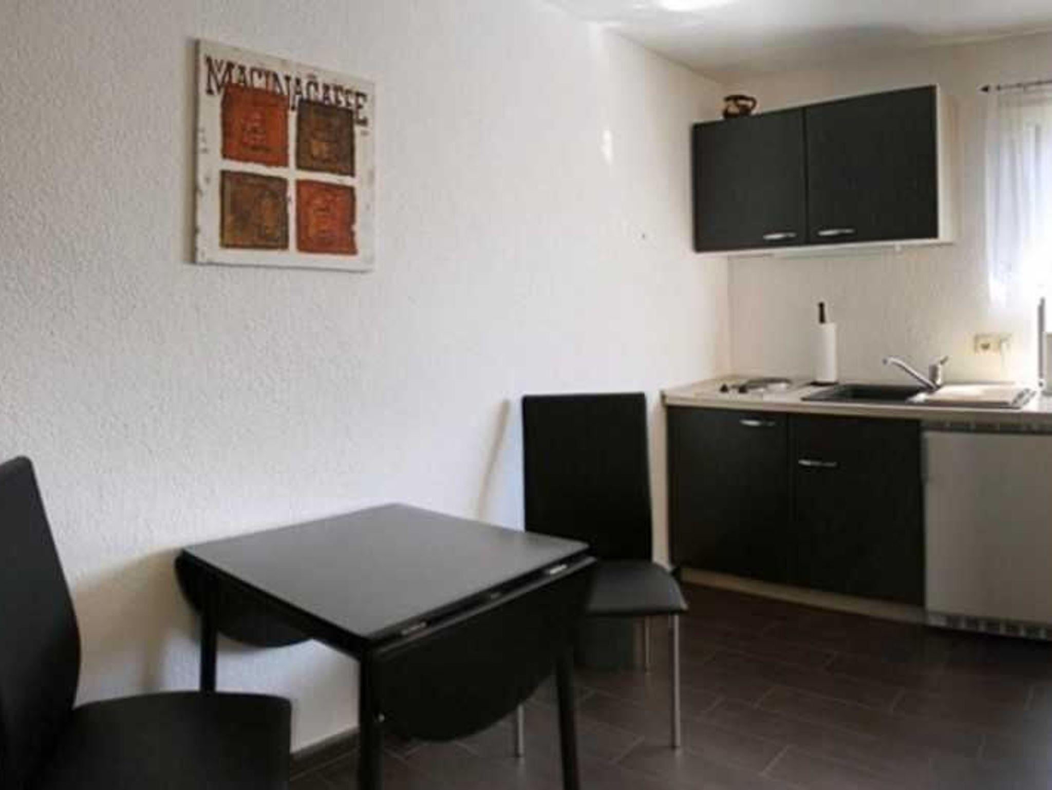 - ein Wohnraum mit Sitzecke, TV, Radio, Essecke sowie eine Küchenzeile mit 2-Plattenherd, Kaffeemaschine, Wasserkocher, Toaster, Kühlschrank mit ***-Gefrierfach.